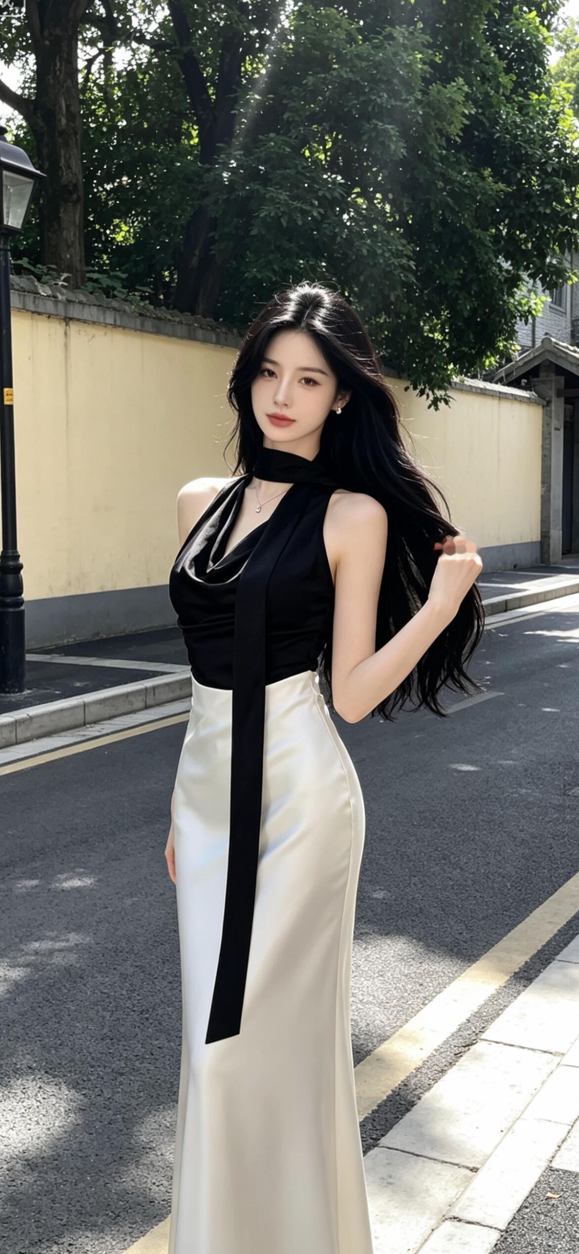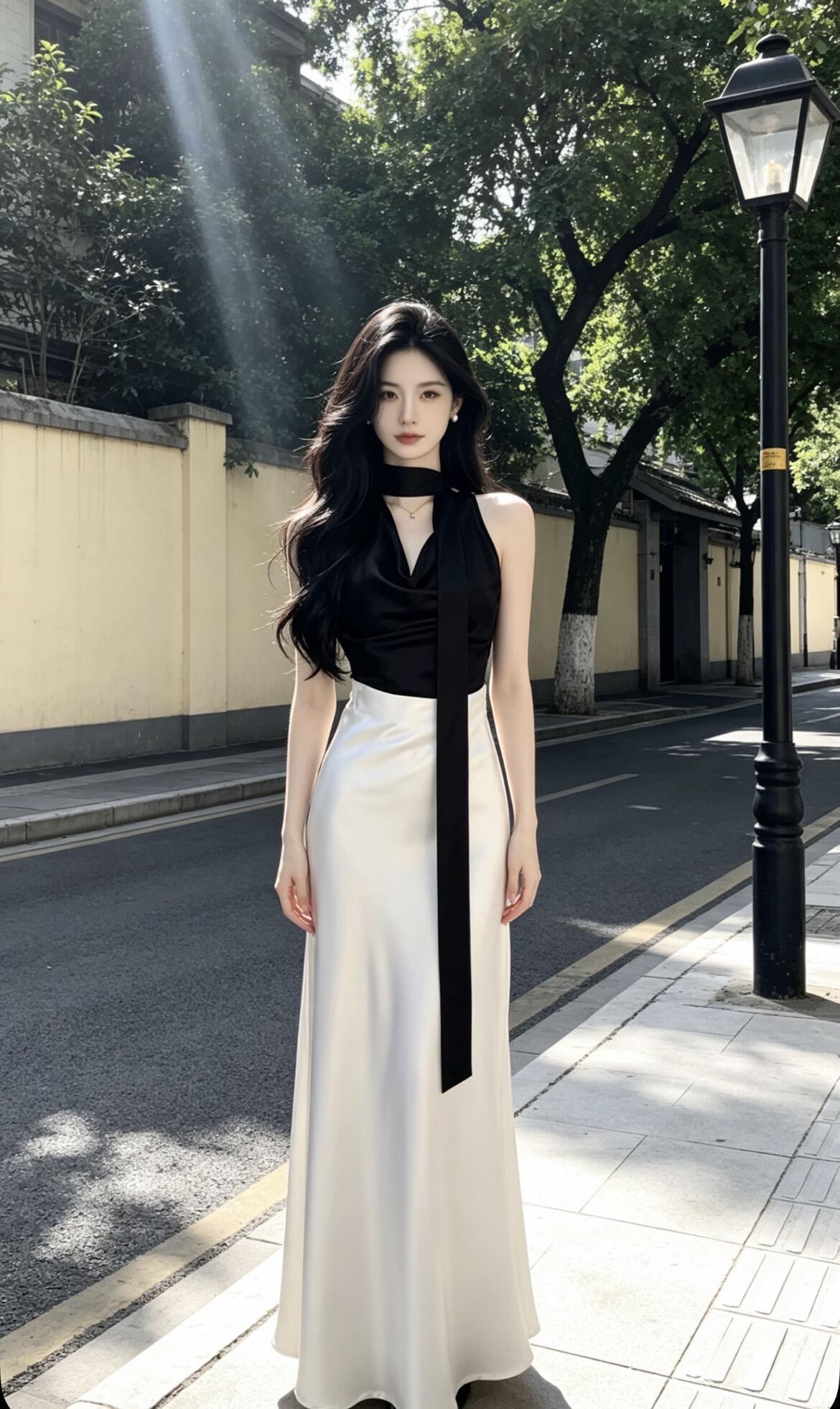 优雅少女风,黑白撞色连衣裙,甜美可人!👗✨
