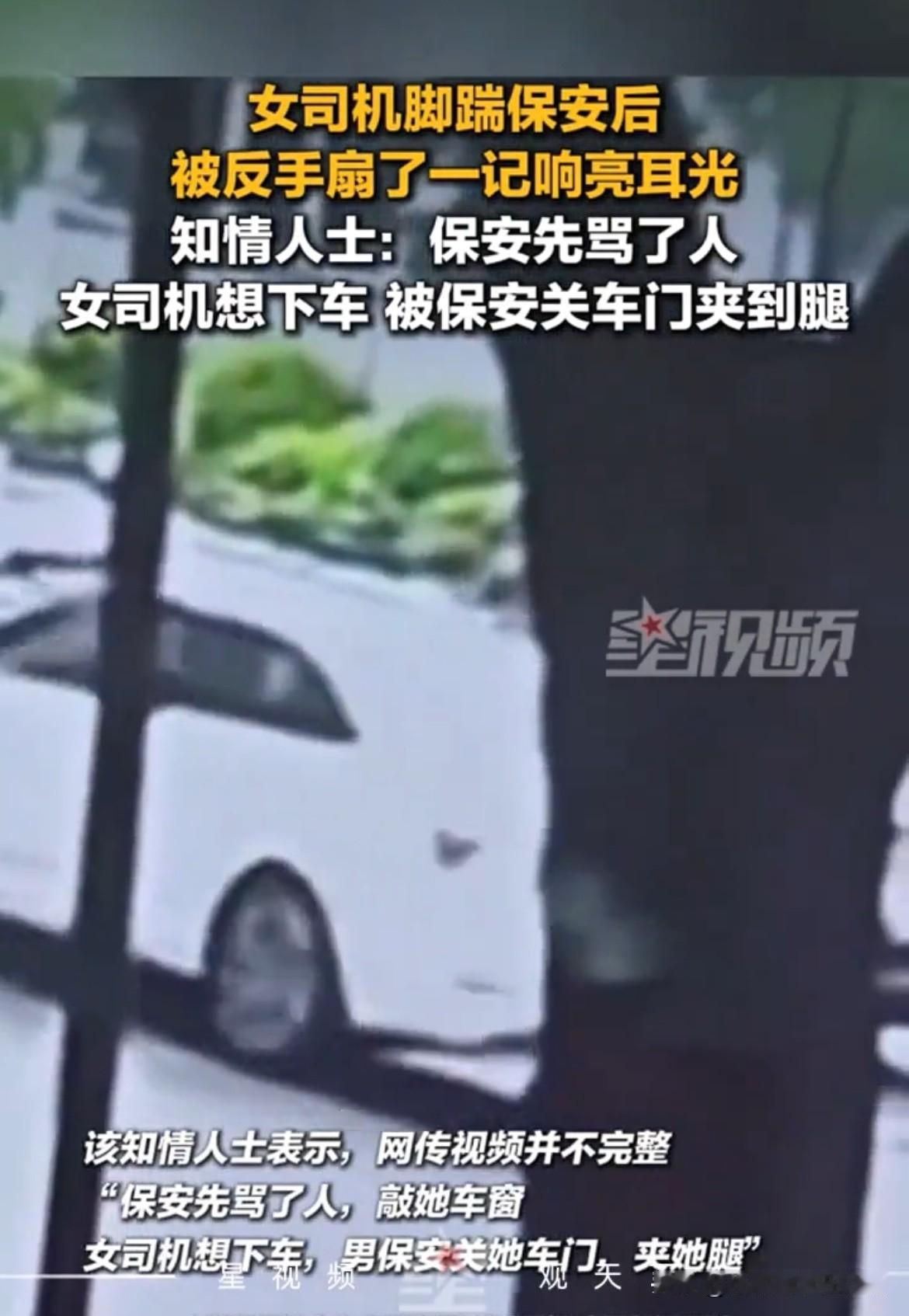 “保安先骂了人,还关门夹到了女司机的腿!”近日,一段女司机脚踹保安,被保安反手狠狠扇耳光的视频在各大平台疯传,短短几十秒的画面,让网友们吵翻了天,随着事件持续发酵,知情人士曝出完整内幕,事情根本不是大家看到的那样,冲突背后藏着不为人知的前因后果,舆论瞬间彻底反转!