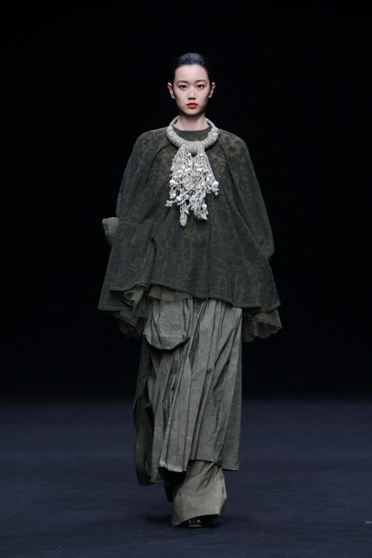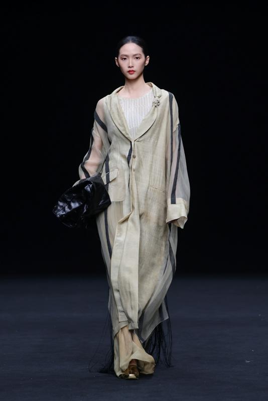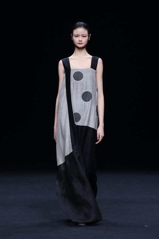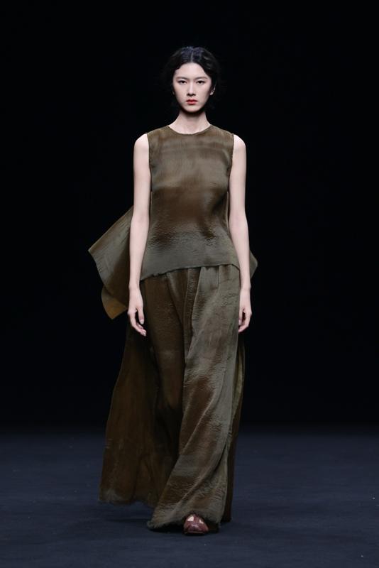壹亍·许家煜 2026春季中国国际时装周「来回」2026春夏系列,将东方禅学"动静相生、虚实相依"的生命意境转化为可触摸的时尚语言。设计师以"来去自如,心体无滞"为核心,用流动剪裁与松弛廓形消解穿着束缚,让服装随身体自然舒展。从米白、茶褐到墨黑的低饱和色调,如同水墨晕染,营造出宁静致远的东方美学氛围。整场大秀没有炫技的设计,却在每一处细节中传递着当代女性在奔赴与回归间寻求平衡的自洽与从容。