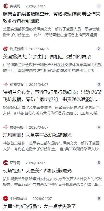 当然,这场闹剧里最大的笑话,还是特朗普那张嘴。他说“零伤亡”,伊朗那边就公布战报说多名美军士兵死亡,甚至还有遗体照片。他说“未留下任何痕迹”,结果整个残骸区被伊朗端得干干净净。他说“不抛下任何一个美国人”,结果士兵遗体被丢在了敌人的战场上。更绝的是,伊朗武装部队哈塔姆安比亚中央总部发言人直接发布声明说,美军黎明时分出动多架军机进入伊朗领空,结果被伊朗的电子战和防空系统一顿暴揍,击落了多架敌机。在伊朗军方对美军营救部队实施包围后,美军事后被迫对其已被击落的飞机和武器装备进行了“密集轰炸”,试图销毁证据。这番说法,直接把美军从“主动炸毁故障飞机”的版本,变成了“被围殴后仓皇销毁证据”的版本,让美方的说辞更加站不住脚。