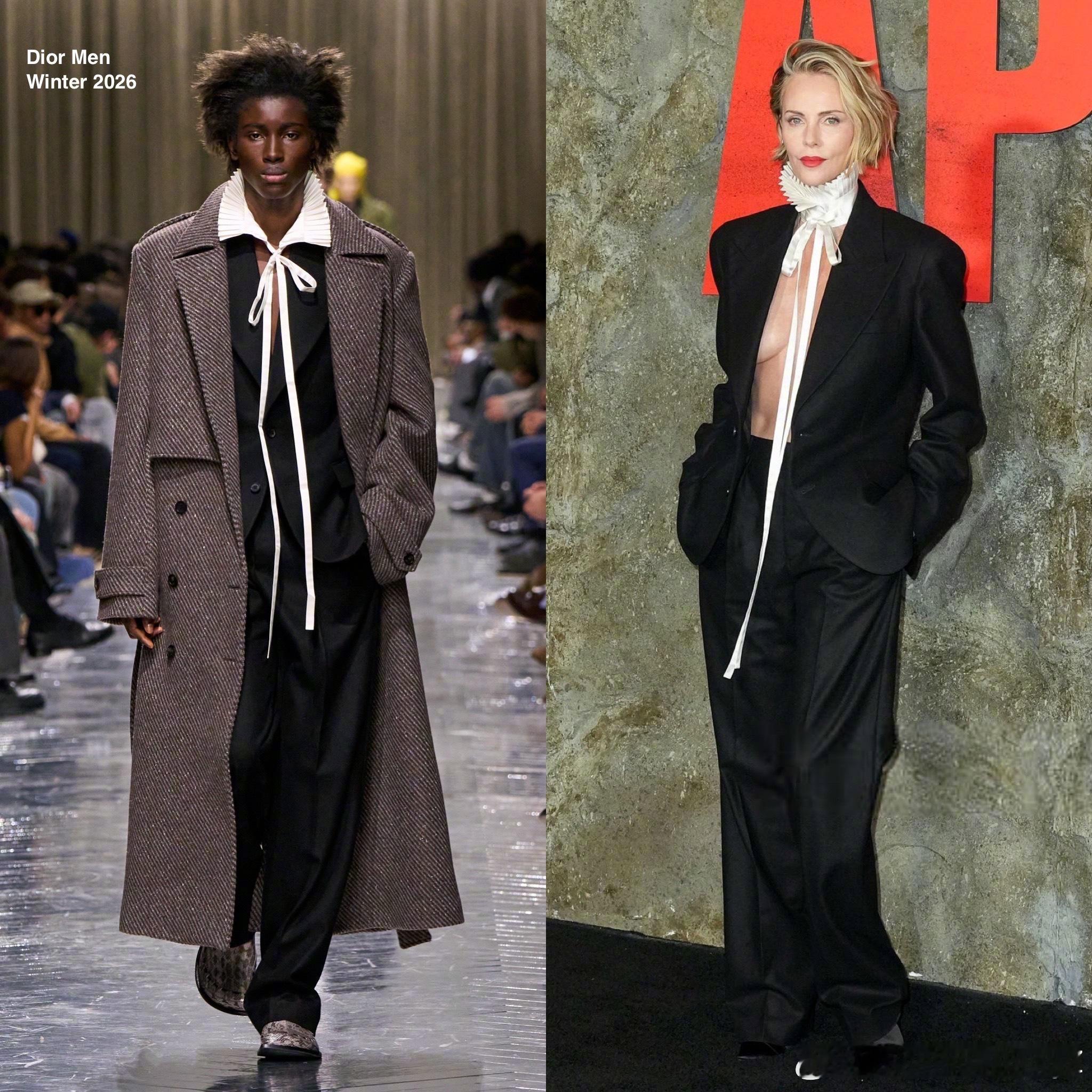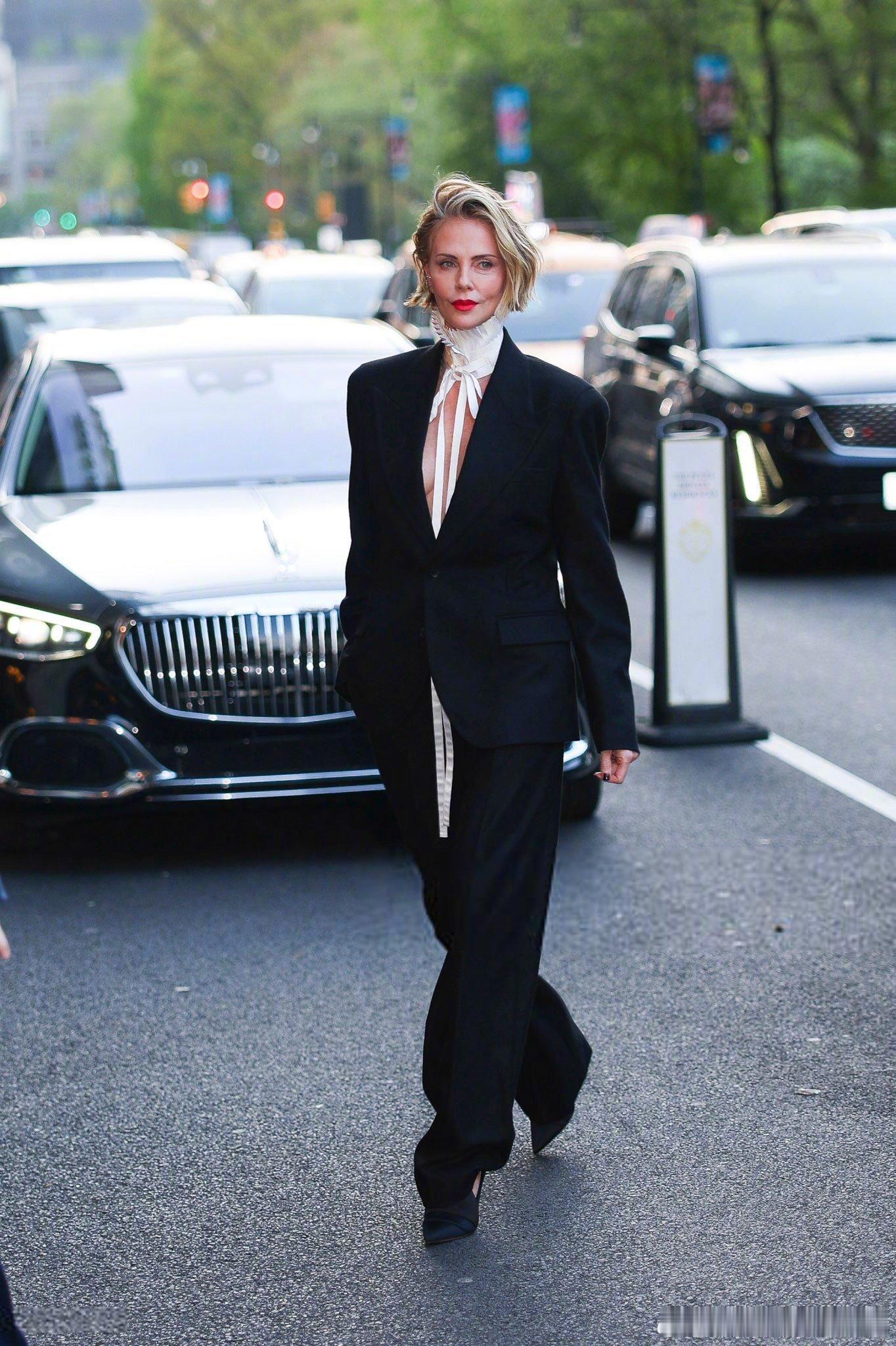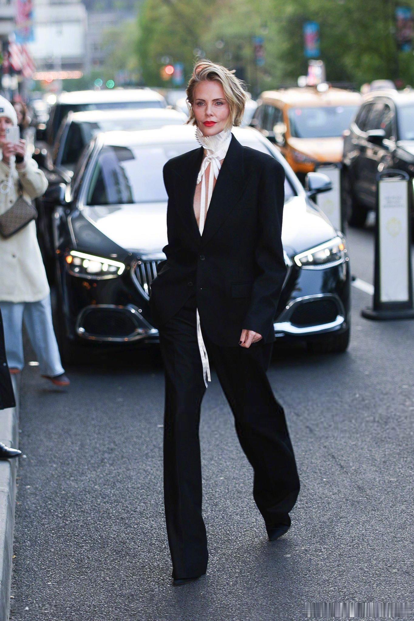 首映礼真空上阵,身着 Dior 男装冬季系列西装亮相,飒爽又性感。BOTTEGA VENETA、Alaïa 的层叠荷叶边,在她身上也不显繁琐,被英气中和。Givenchy 西装、Balmain 黑衬衫及皮裤,则完全是 Theron 的舒适区,美得毫不费力!