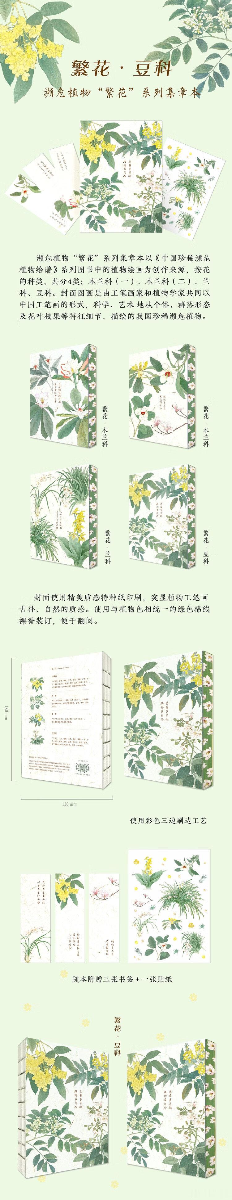 知書club 新书介绍丨濒危植物“繁花”系列集章本以《中国珍稀濒危植物绘谱》系列图书中的植物绘画为创作来源,按花的种类,共分4类:木兰科(一)、木兰科(二)、兰科、豆科。