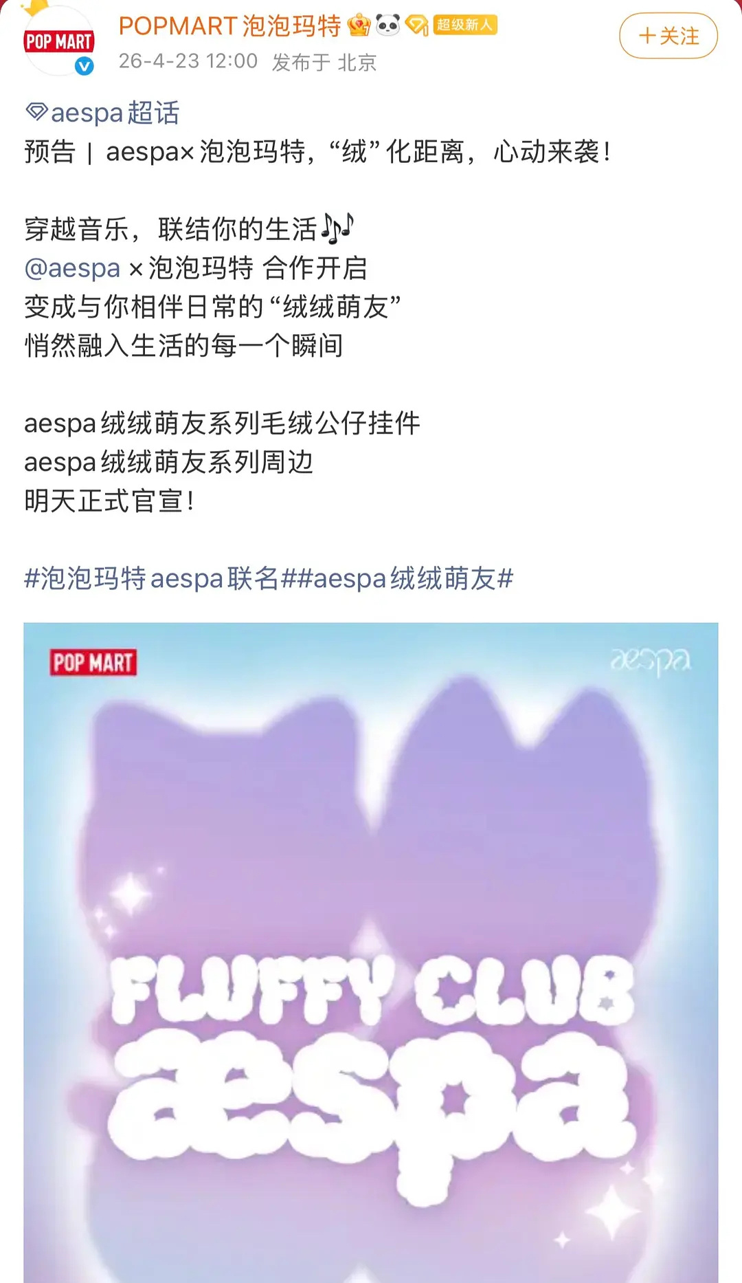 aespa泡泡玛特联名合作 aespa将于泡泡玛特联名合作,明天官宣✨