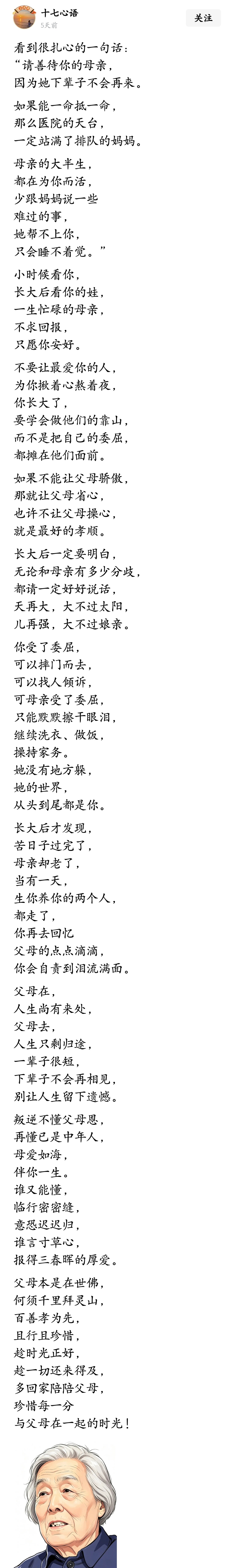 请善待你的母亲,因为她下辈子不会再来。