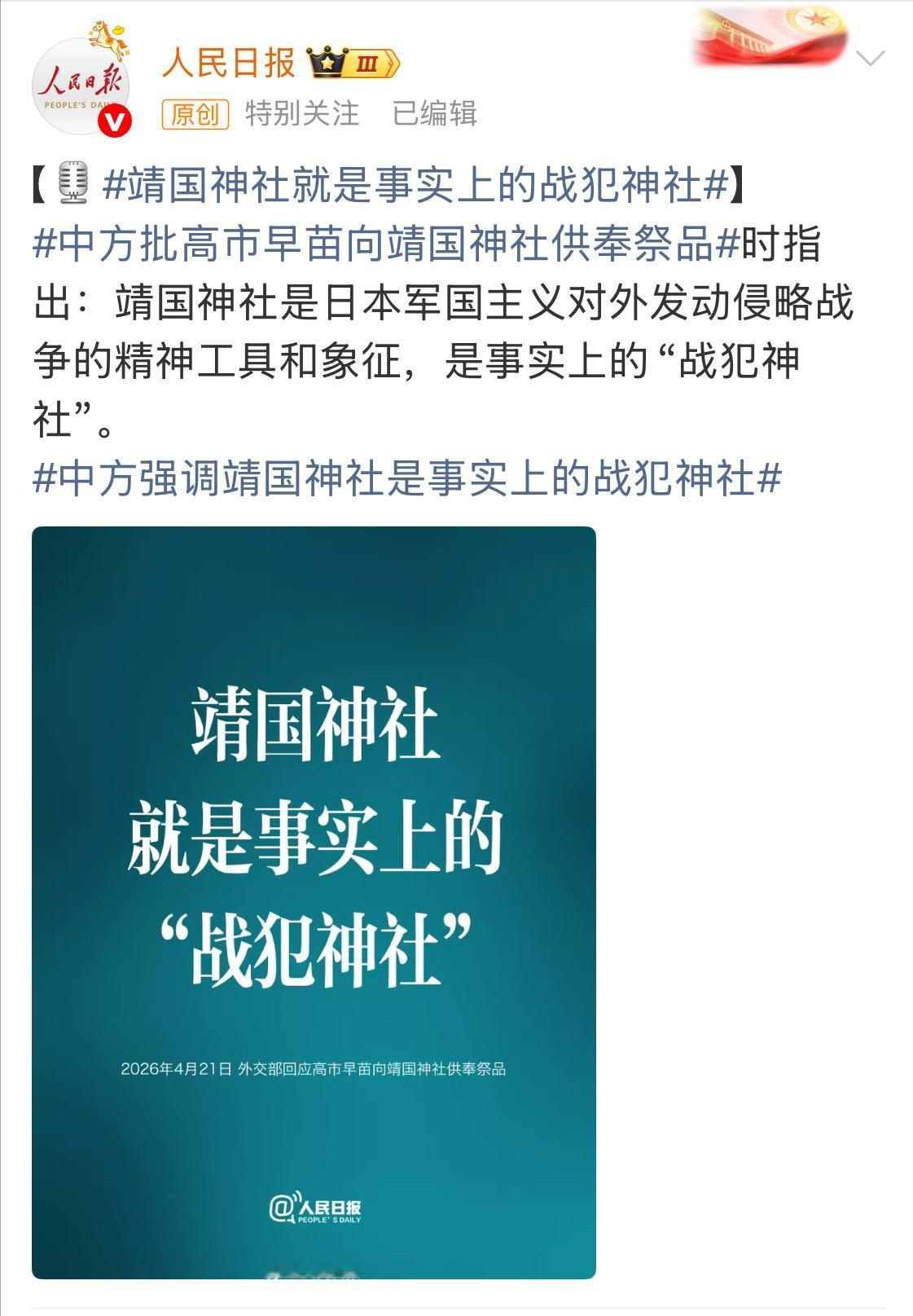 中国向全世界发出明确声音:日本靖国神社就是战犯神社。 日本靖国神社就是“日本军