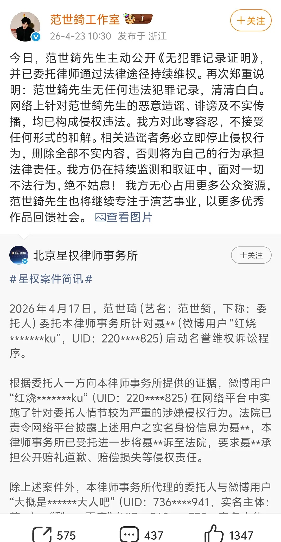范世錡工作室公开了无/犯/罪记录证明📝这哥真的惨,被下沉最没脑子的缠上了,感觉