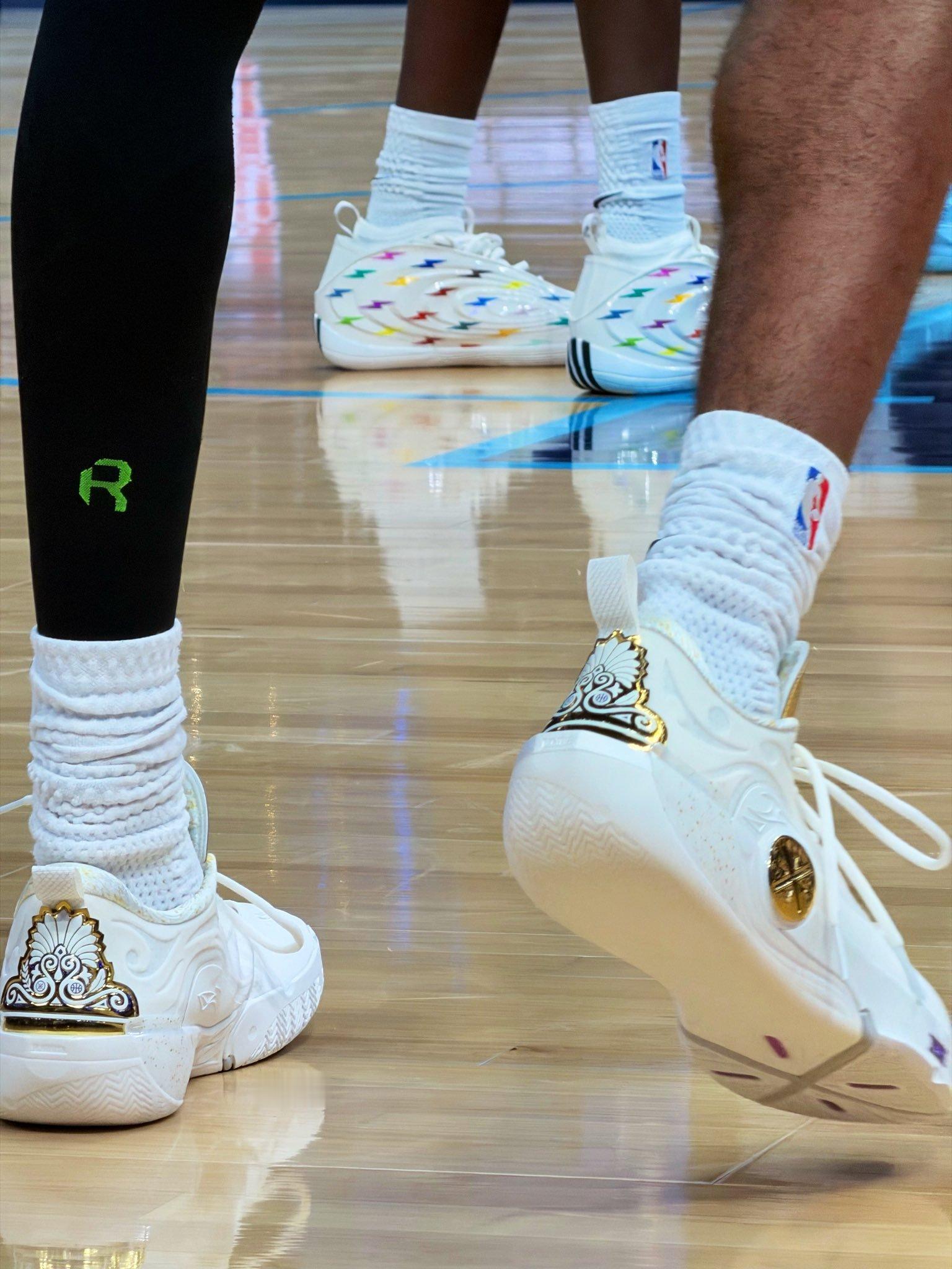 以赛亚·乔 Isaiah Joe 在今日的季后赛中 上脚一双白金色的韦德之道12