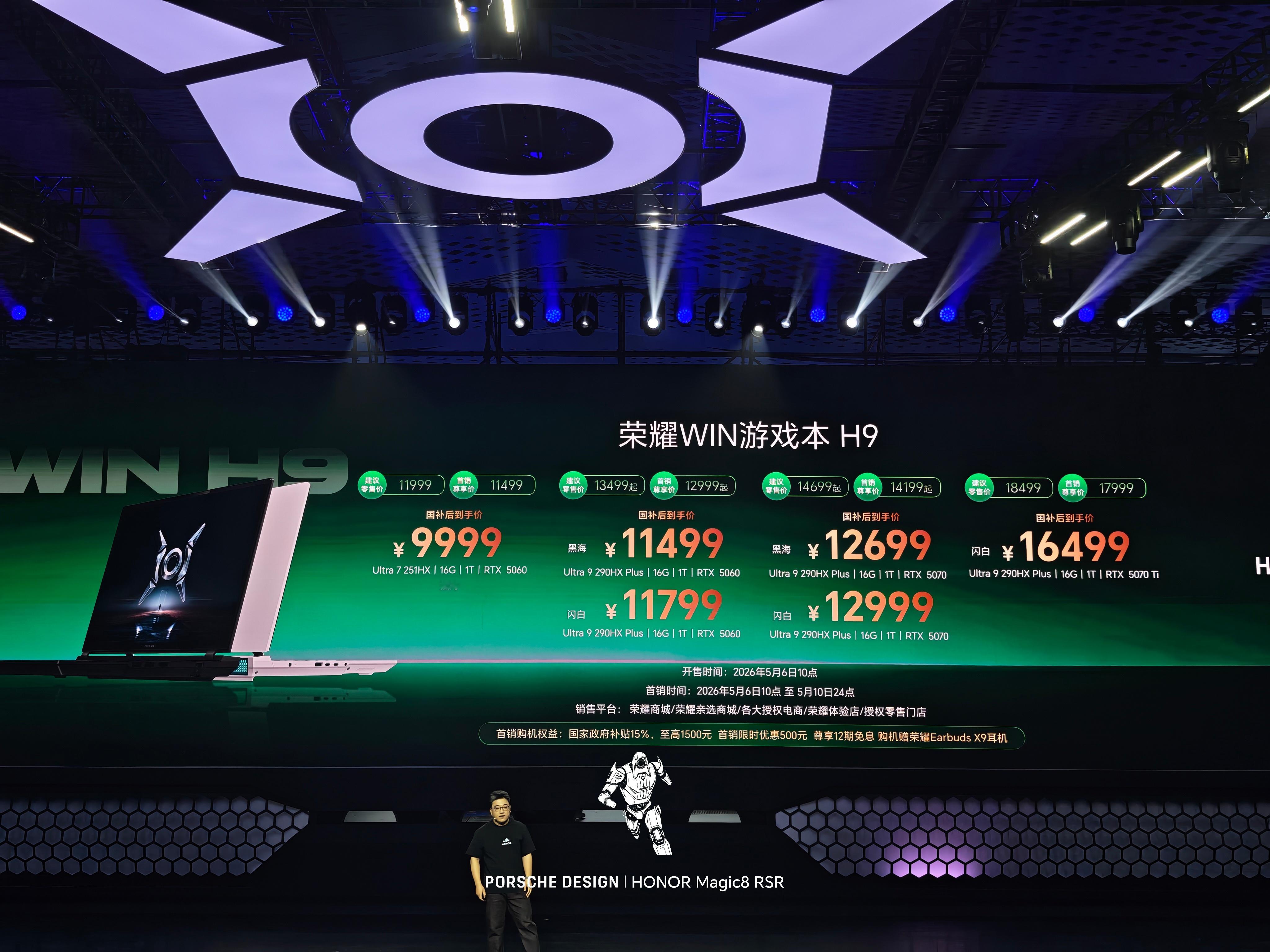 荣耀WIN游戏本暨全场景新品的价格出来了:WIN游戏本H9国补后售价9999元