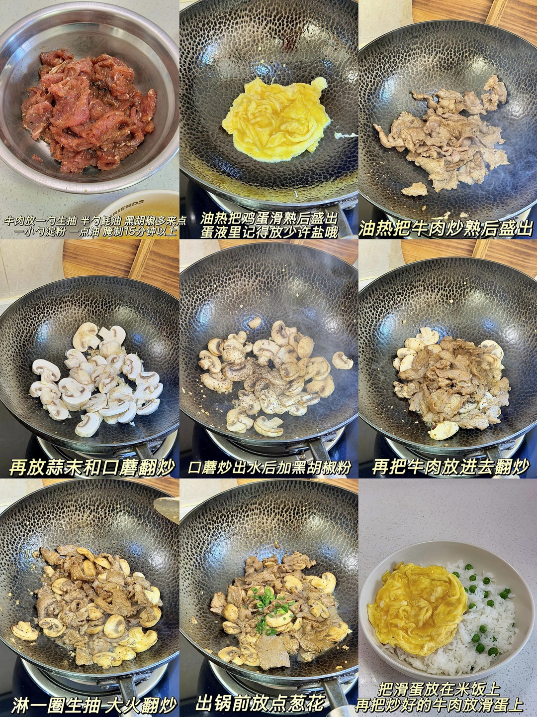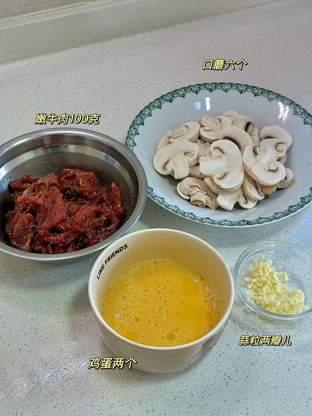食材:牛肉 口蘑 鸡蛋 蒜末