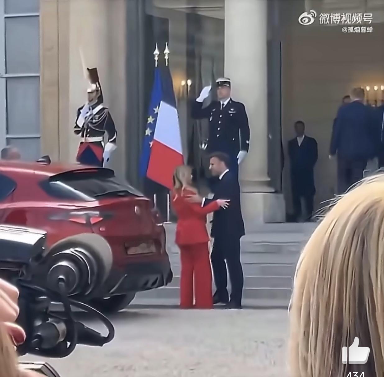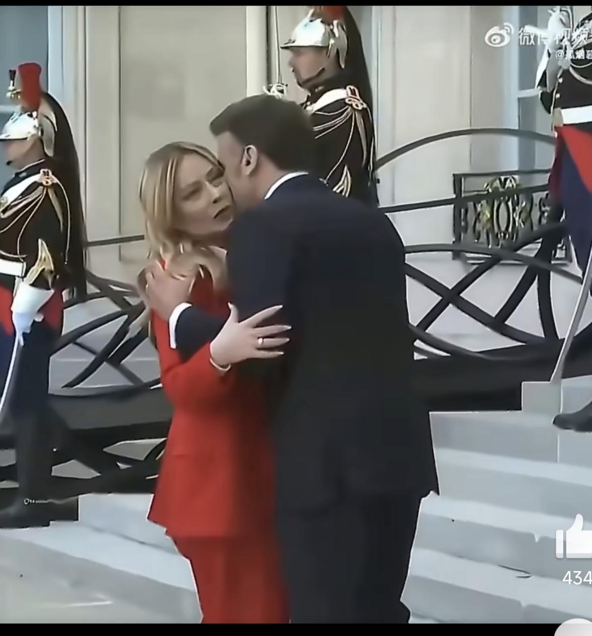 法国总统马克龙见意大利总理梅洛尼,抱着亲就不放手了!外网疯传,年轻的精神小妹是比