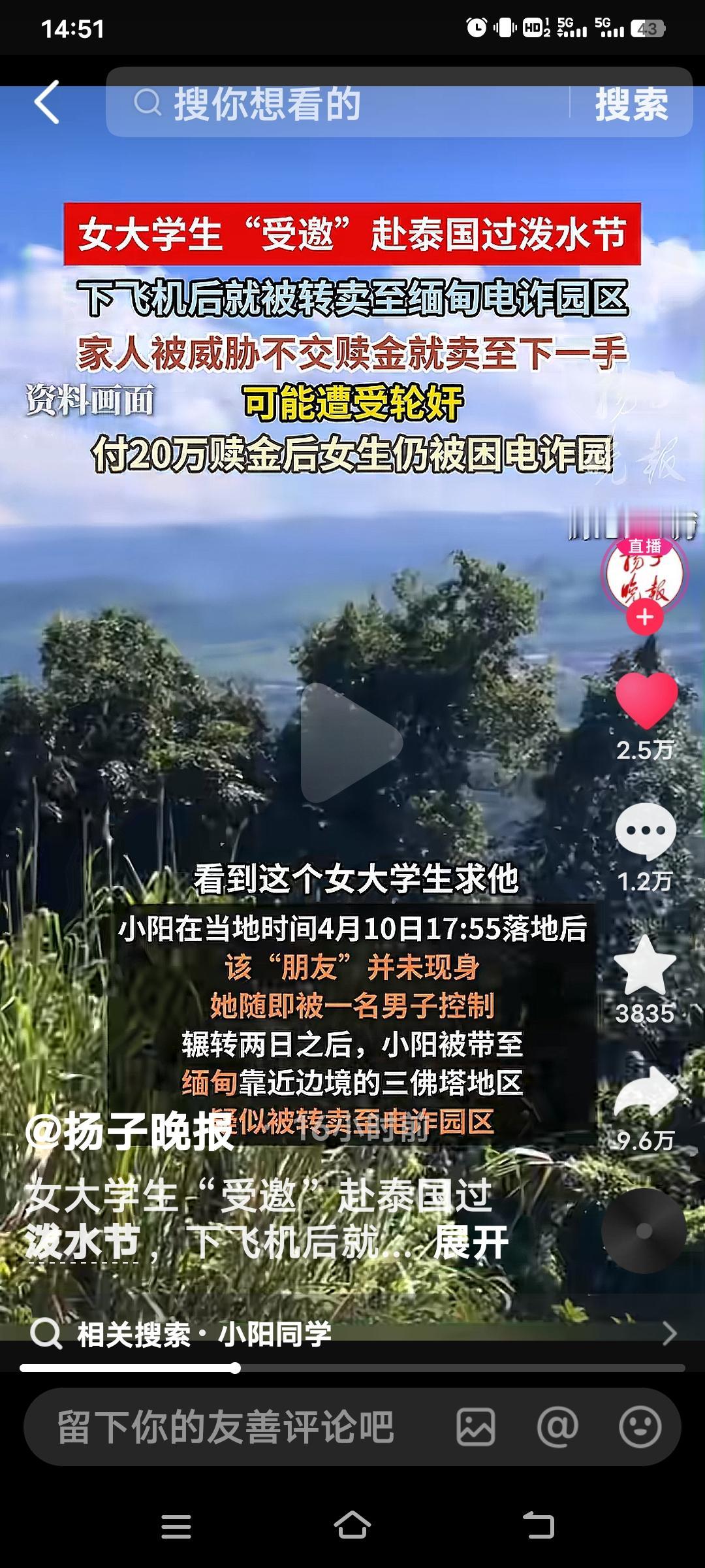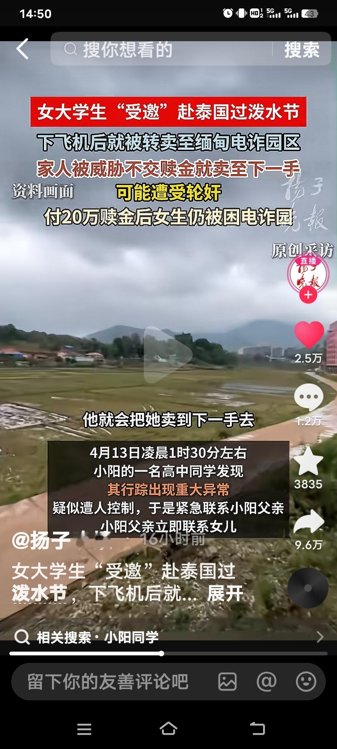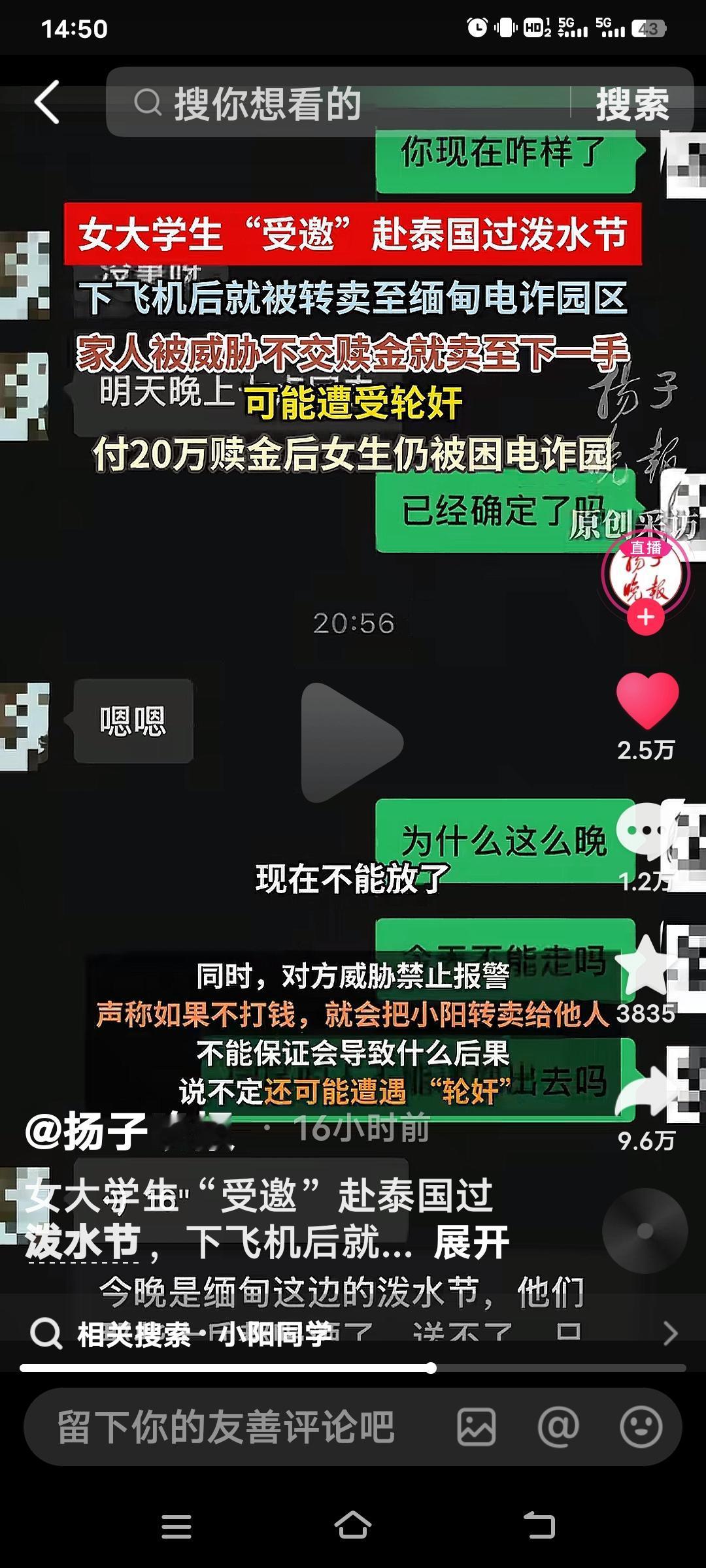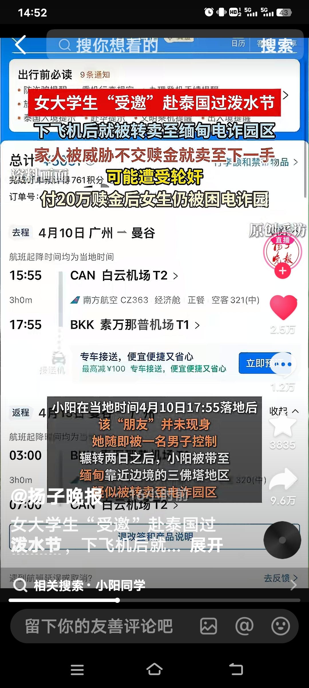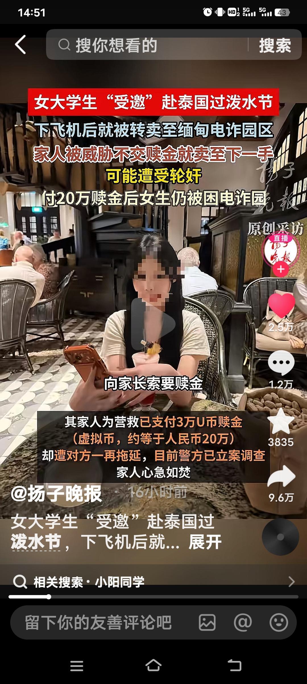 女大学生“受邀”前往泰国过泼水节,结果落入电诈骗局,这着实令人揪心。广东大一女生小阳,被“朋友”邀请去泰国,落地后便遭控制,随后辗转到了缅甸电诈园区。