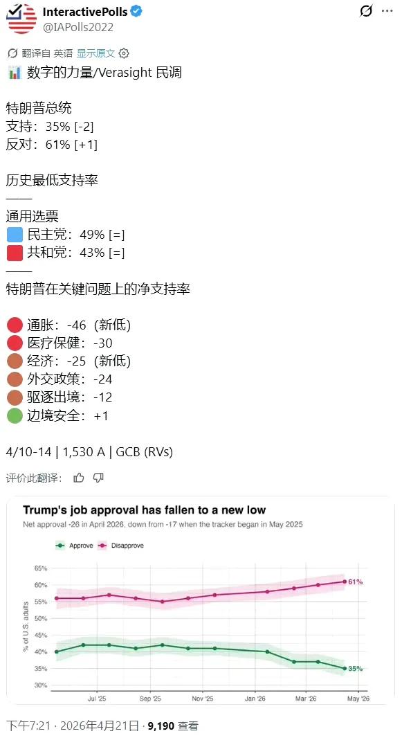 不过,懂王可以不在乎支持率,但是共和党在乎。懂王和共和党是绑定关系,懂王支持率低,就意味着共和党现在被大多数美国老百姓讨厌。照这个趋势,共和党在中期选举失败的概率非常大,众议院基本上可以确定要丢,就看参议院能不能保住了。