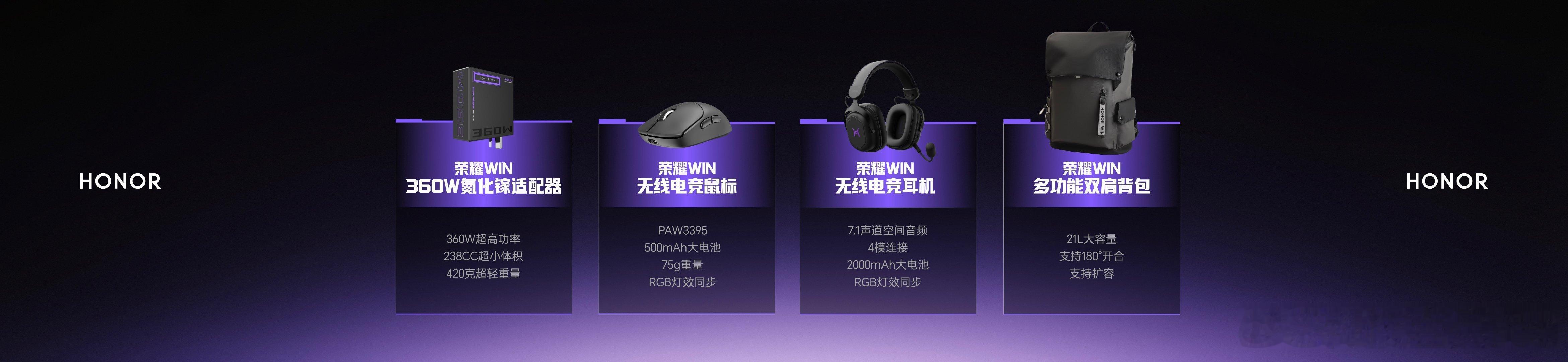 然后还带来了360W氮化镓充电器、无线电竞鼠标、电竞耳机、多功能双肩包,这下齐活了。