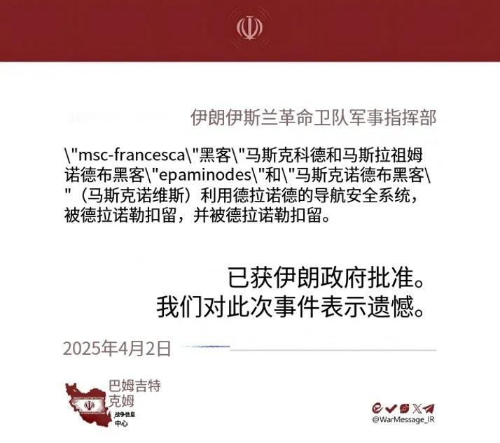 被扣的两艘船,一艘巴拿马籍MSC Francesca,一艘利比里亚籍Epaminondas,都是集装箱船 。伊朗方面给的理由是“未获授权、篡改导航系统”,还点出其中一艘“和以色列有关联”。这话听着像官方措辞,实则暗藏杀机——以色列是美国在中东的铁杆,伊朗这是明着告诉美国:你扣我的船,我就扣你盟友相关的船,看谁更疼!