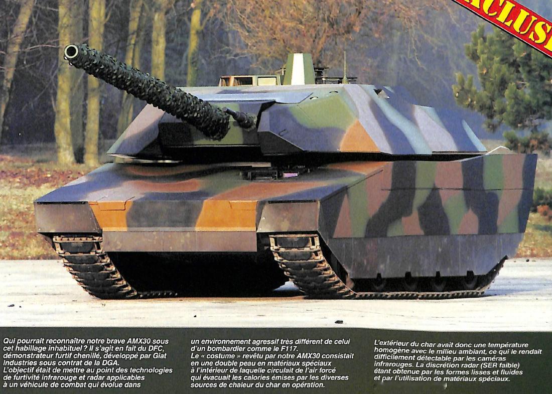 而另一辆则是被称作“隐身履带演示车”(DFC)的特殊原型车,基于AMX-30B2坦克修改而来,加装了能够吸收雷达波的外壳,其中的间隙层还能够降低红外辐射特征。