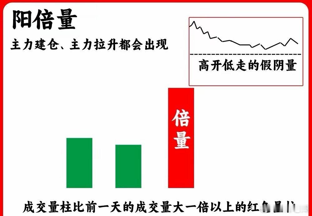 注意了!成交量的倍量是不可否认的主力形态,但是倍量出现的频率是非常果的,并不是所以的倍量形态都值得关注,一旦出现这八种倍量形态,我会毫不犹豫的关注起来。还是老规矩,点赞收藏或评论六六六支持一下,我每天分享炒股干货,以免以后想温习找不到了一、触底倍量也叫底倍量,股价经过长时间的下跌以后,成交量逐步的缩量直至出现地量,说明市场抛压已经释放完毕,在这个环境下,出现倍量,同时股价走出阳线,突破短期均线。这样的倍量形态就是底倍量。代表主主力在低位吸筹建仓。二、阳倍量这是强势倍量的标准形态,强势的倍量,往往他的成交量是平日的两倍以上,同时走出中大阳线,或是涨停板。股价如果是出于低位,那么就可能是主力的强势建仓,那如果是高位就要谨慎。这种倍量出现,就是为了打破原有趋势的三、平台倍量股价处于一个横盘整理的阶段,形成一个平台,突然股价出现倍量,阳线突破平台上沿,形成突破。这种倍量出现,代表主力已经洗盘完毕,股价进入另一个区间。所以如果此时股价在突破平台阶段,成交量没有配合放大,那就有可能是假突破四、凹口倍量股价处于上涨趋势过程里,股价慢慢的上涨,次日股价开始回调,成交量出现缩量,同时出现小阴线或是十字星,随后,再次出现倍量阳线,反包阴线,从成交量的形态来说,就行成了凹口量,两边量大,中间量小。五、倍量加倍量这种双倍量的是经典主升形态。成交量出现倍量,次日继续出现倍量,成交量一天比较一天要大,连续倍量。往往这种成交量形态会出现上涨趋势中后期。同时股价同步上涨,这就是比较健康的量价关系六、倍量缩倍量这种成交量形态一般出现在主力洗盘阶段,成交量出现成缩倍量的减少,一个量柱都减半。说明此时的抛压开始变弱。七、倍量发烧柱股价经过产时间的上涨以后,在阶段的高位,出现倍量。说明此时的主力在高位出货,往往这个时候会出现量价背离,成交量放大, 股价却滞涨,所以这个时候的阳线或是阴线不是特别重要。倍量发烧,赶紧跑八、过顶倍量这种倍量形态一般出现上涨趋势的初期阶段,股价一波上涨以后形态一个高点,随后股价开始回调调整,下跌的幅度不会很大,继续反转向上,再这个过程里,股价再次倍量,股价突破前期高点的一个过程,这个就是放量过左峰形态。股价突破前期高点,也就是主力承接了套牢盘的全部筹码,是一个强势形态好了!以上就是倍量的几种形态,下方我准备了对应的案例图,建议形态和案例结合起来看。希望对大家有启发,也是最为基础的内容,一定吃透。我们下期内容再见股票交易中的庄家怎么出货市场量能分析股市天量成交额股票倍量阴战法股市倍量阴战法A股量能分析个股放量