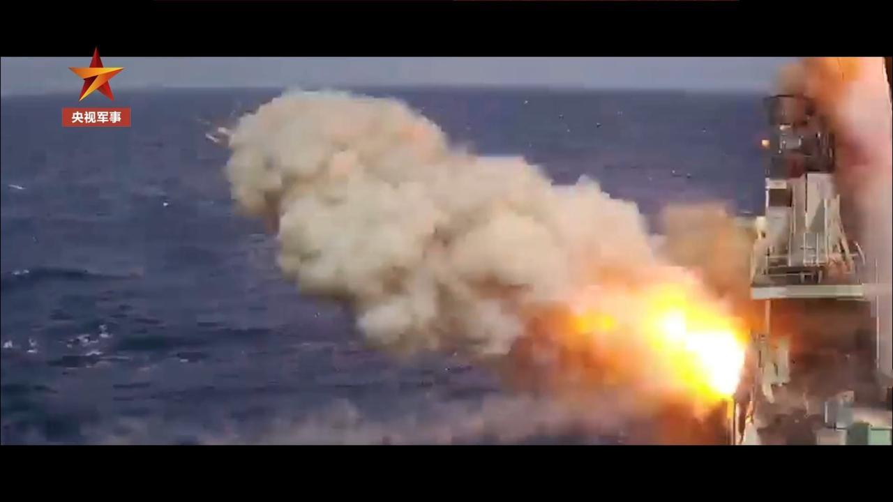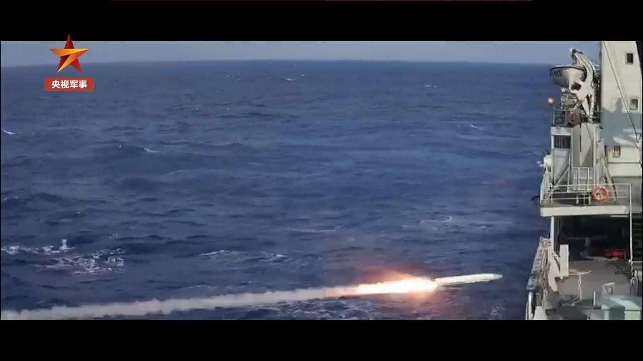 官方发布了潜射鹰击-18打击退役的905型补给舰882“鄱阳湖”舰的画面,图1图
