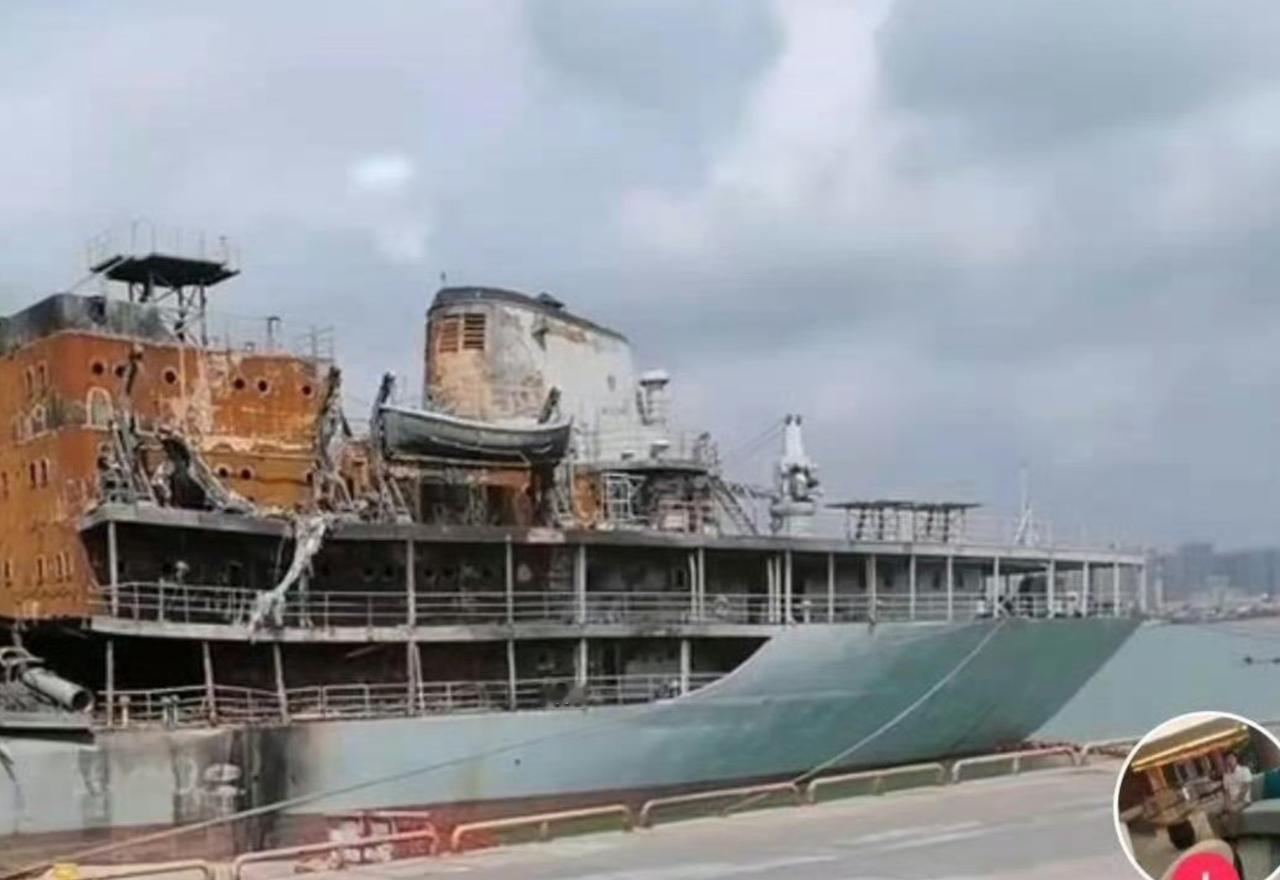 官方发布了潜射鹰击-18打击退役的905型补给舰882“鄱阳湖”舰的画面,图1图2是导弹命中的瞬间状态。图3是潜艇发射,发射出水后迅速爬升高度。图5图6是2021年曝光出来的照片,就是以靶舰状态遭到打击后回港等待拆解期间的影像。只是5年前大家只知道“鄱阳湖”当靶舰了,但是不知道是被什么命中的,所以官方这个新的视频刚好揭露了谜底。而且5年前那次测试882舰应该不止遭到过1枚弹药打击,至少5枚,而且打击位置在上层建筑,特别是舰桥,打击针对性相当高。精度打击测试可以不装药或减装药,只为测试精度,不会造成舰船沉没。