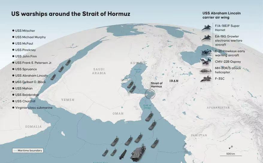 现在的波斯湾是个什么情况?美军的扫雷舰队直接开进了海峡作业,大批主力舰艇在周边水域大摇大摆地巡航。