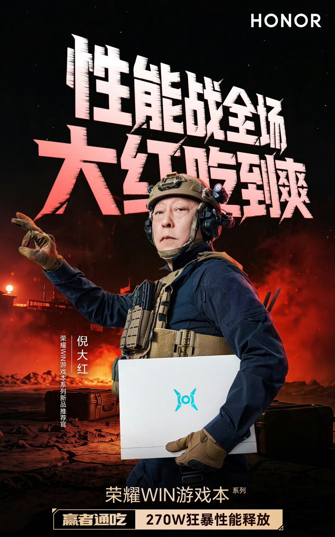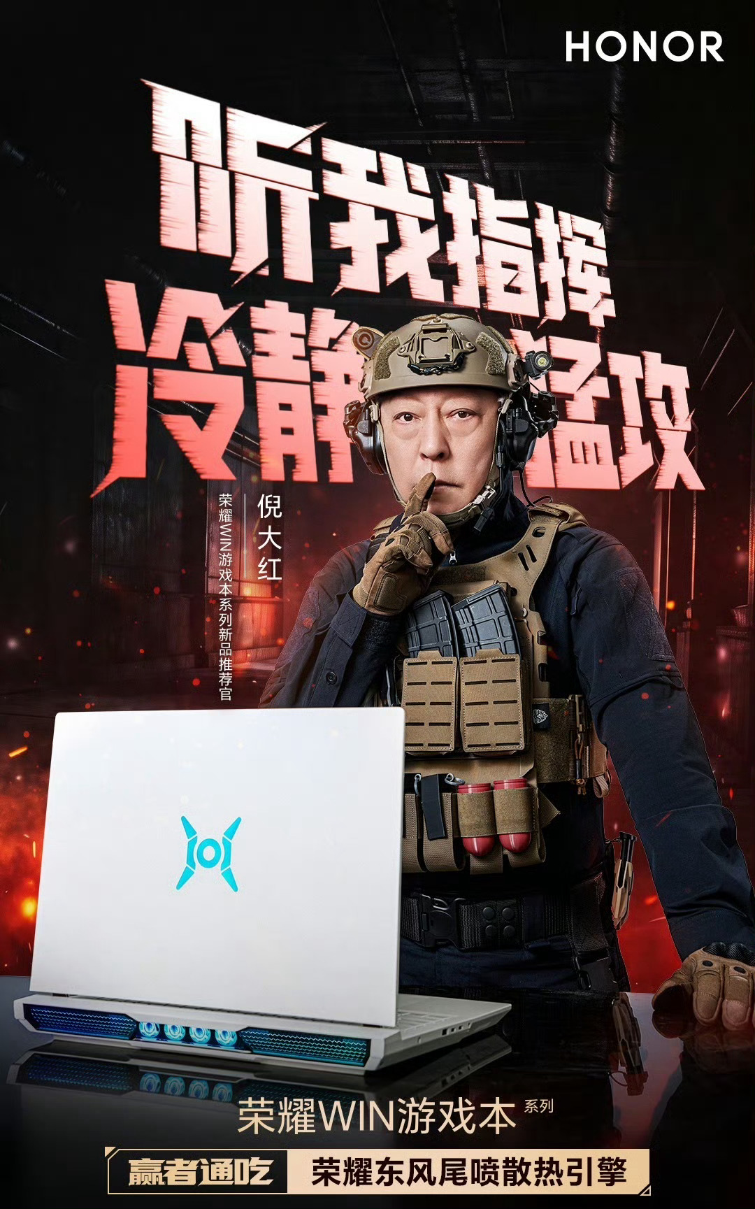 这个倪大红老师的抽象程度恐怕比他的眼袋都要大,在荣耀WIN游戏本的宣传片里,倪大红老师一人分饰俩角,不仅要负责给另一个自己灭火,还又一次提到了自己的手磨咖啡梗,这次是冲着专门灭火的东风尾喷散热引擎来的—散热比手磨咖啡还丝滑,倪老师,别喝手磨咖啡了,一起来把三角洲吧!第一个这样给电脑散热的人是天才