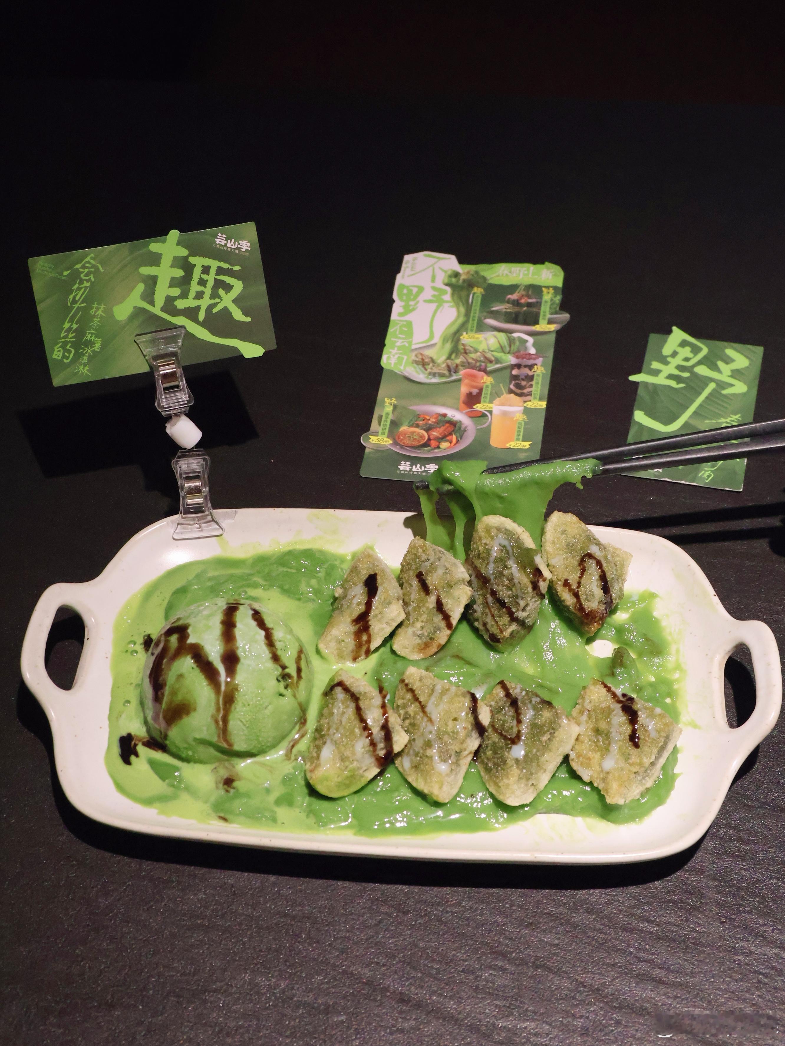 逛天河城🛍被芸山季新品狠狠拿捏住了😭🍵趣·会拉丝的抹茶麻薯冰淇淋🍨糯叽叽麻薯还能拉丝,抹茶味超浓,好吃到😋一口沦陷…野·春叶三味涮肉像开盲盒,三款肉肉各有风味,裹着叶子清香超嫩~野·香茅炸物拼盘酥到掉渣,蘸上酱料🥢香迷糊了…💕饮品颜值和味道都全员在线!🧋黑松露乌云奶茶、🍍凤梨香茅爽、🍑紫苏桃桃乐,清爽又特别,和菌汤火锅绝配…✨他家的菌汤每次喝都鲜掉眉毛,搭配新品吃🉐我们幸福感🆙🆙🆙来天河🛒逛gai后,和家人朋友聚餐就约芸山季啊~