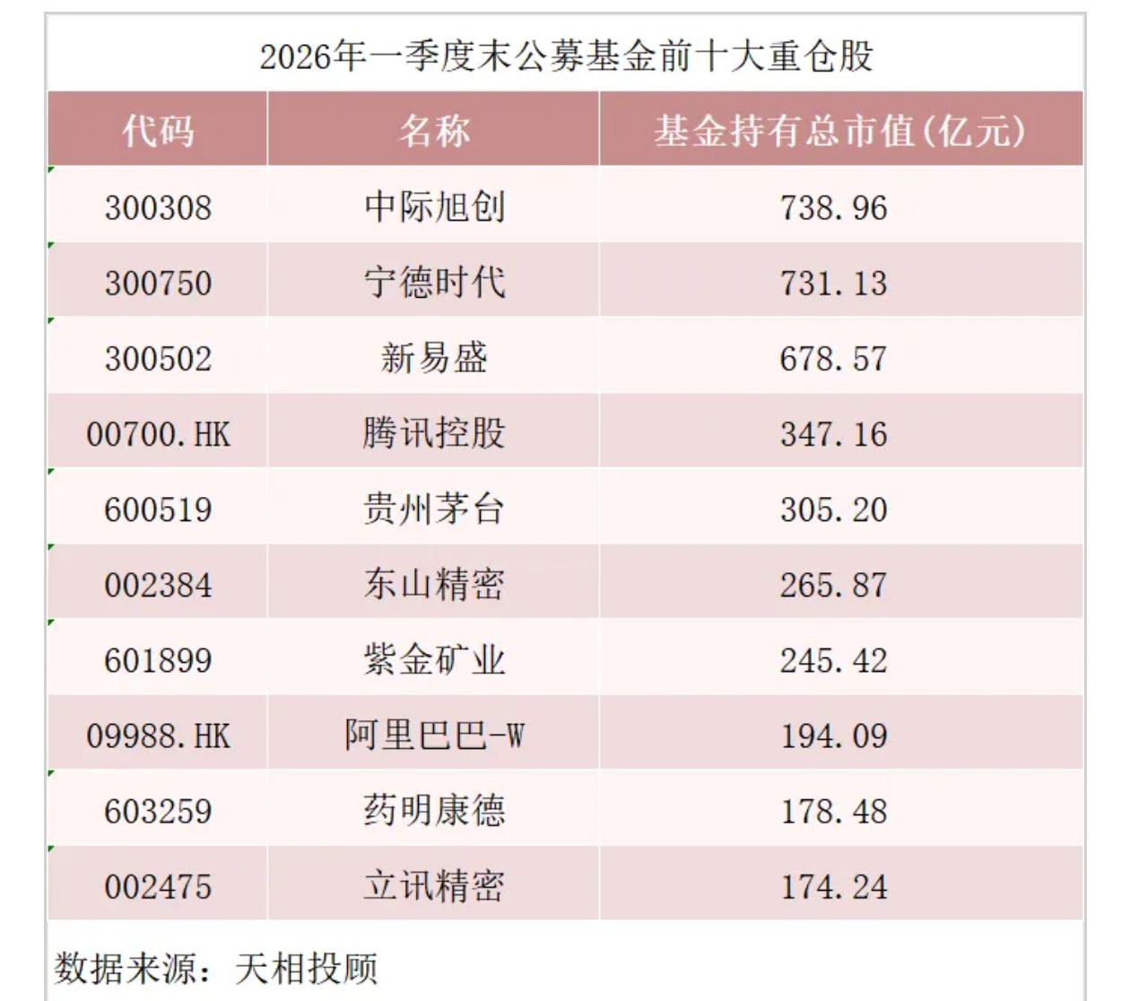 公募基金大幅加仓AI硬件端通讯行业,中际旭创、新易盛、东山精密进了公募基金十大重仓股,中际旭创为第一大重仓股;“光”成了公募增持的新宠,亨通光电、长飞光纤、源杰科技、中天科技成了公募十大增仓股。