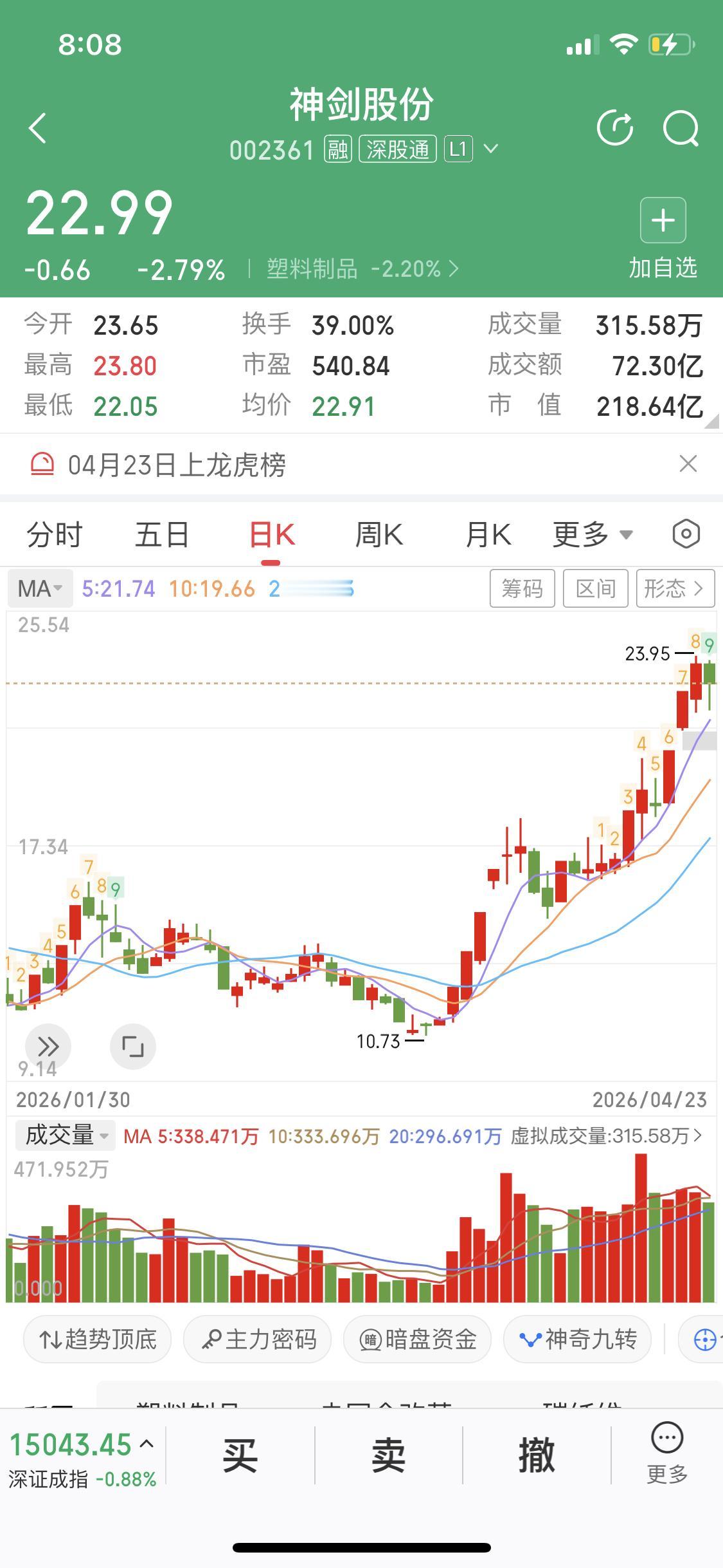 比如神剑股份这类强势股