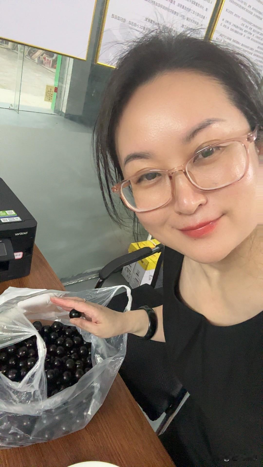 我手上的是嘉宝果,这是跟同事一起去果场摘的,有些是同事过去摘回来的特别好吃,以前没有吃过这种果,我是第一次吃到这种果,很多人说不怎么好吃,其实我觉得成熟了的比较大个的还是挺好吃挺甜的,他们说连皮带籽整个都可以吃进肚子里的,只是说皮加在一起可能吃起来口感会有点涩,有点酸中间的肉甜,里面的籽就怕吃多了会不好消化而已,看你自己喜欢吧。