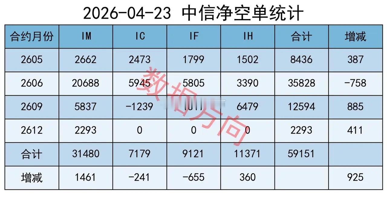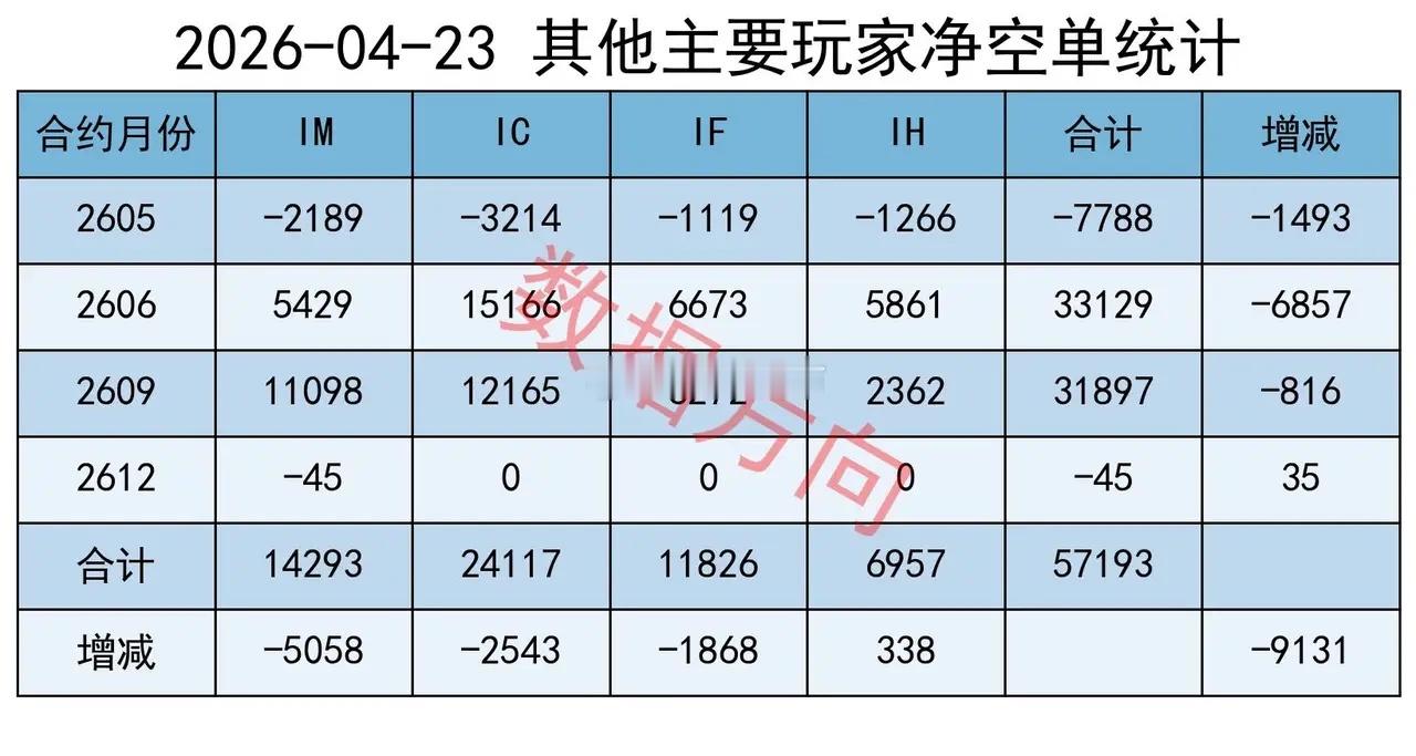 对IH加空338手,分别对IF、IC、IM减空1868手、2543手、5058手;