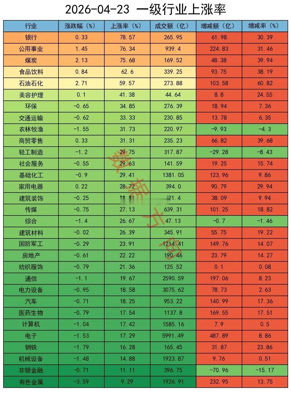 公用事业、煤炭、石油石化,一起进入榜单前5名