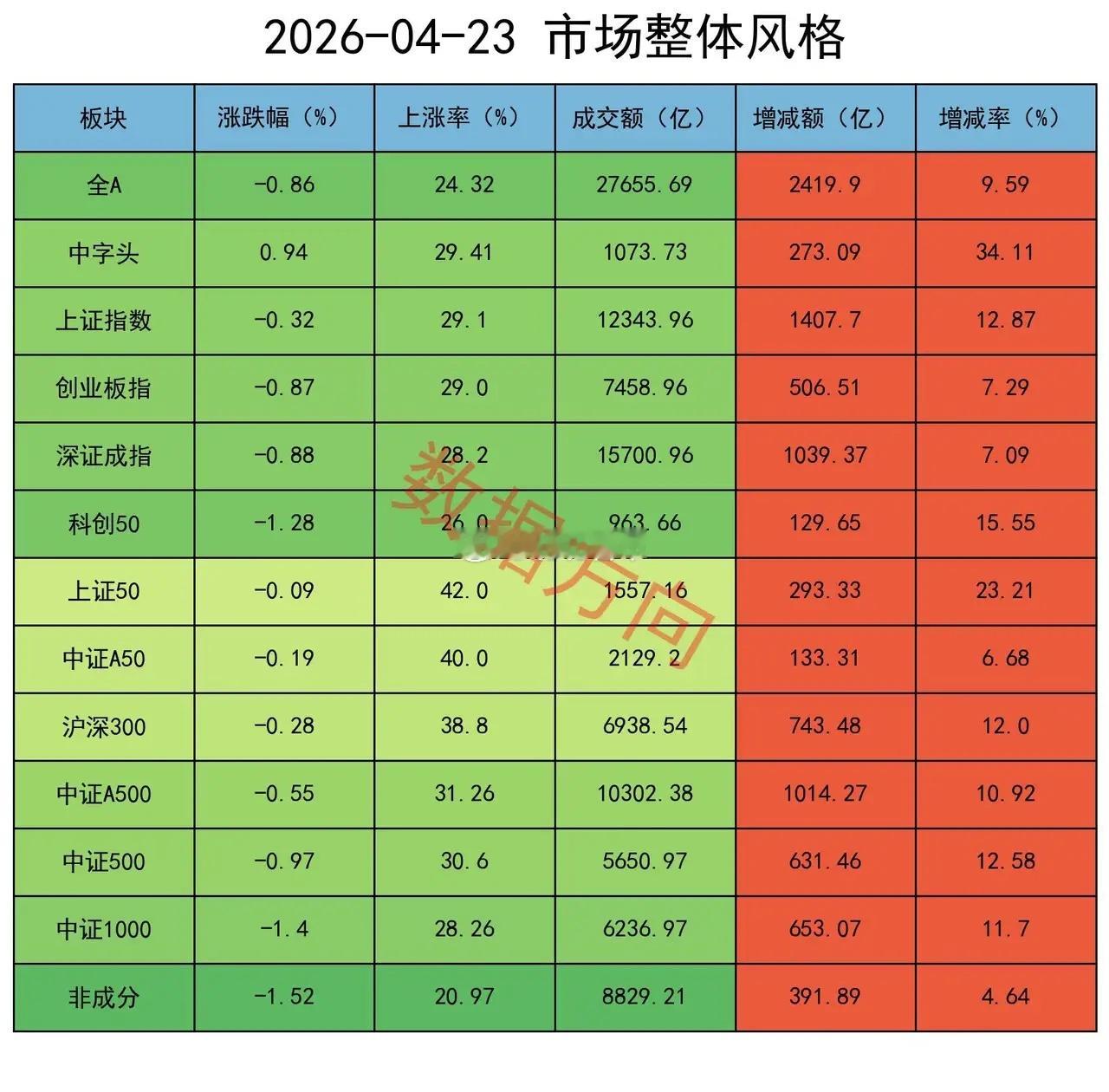 大盘股相对比较稳。上证50、中证A50、沪深300的跌幅分别为0.09%、0.19%和0.28%。