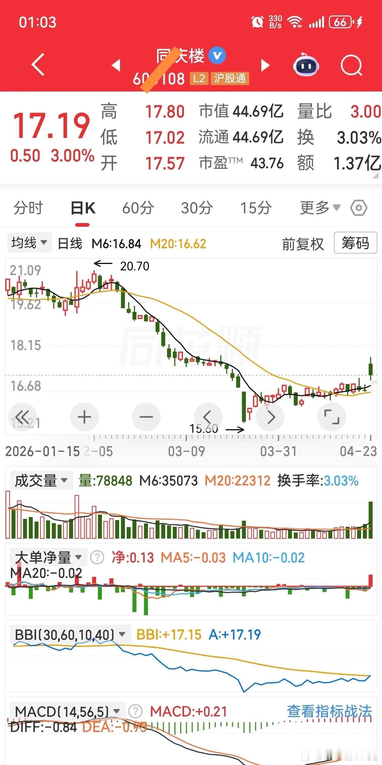上车条件(需同时满足): 1. 回调空间充分:从近3个月阶段高点回落幅度在20%-40%区间,既释放短期获利盘风险,又未完全破坏中长期上升趋势。 2. 承接信号明确:回落末期出现连续3-10个交易日温和放量,量能较下跌阶段提升30%-50%,无单日爆量或持续缩量情况,说明有中线资金逐步进场接盘。 3. 趋势基础完好:6日、20日均线呈现多头排列,且20日均线保持向上倾斜,确认中长期走势重新走好。 4. 短期拐点确认:股价连续2个交易日以上站稳6日均线,且收盘价位于多空指标BBI线上方,说明短多头开始占据主导。
