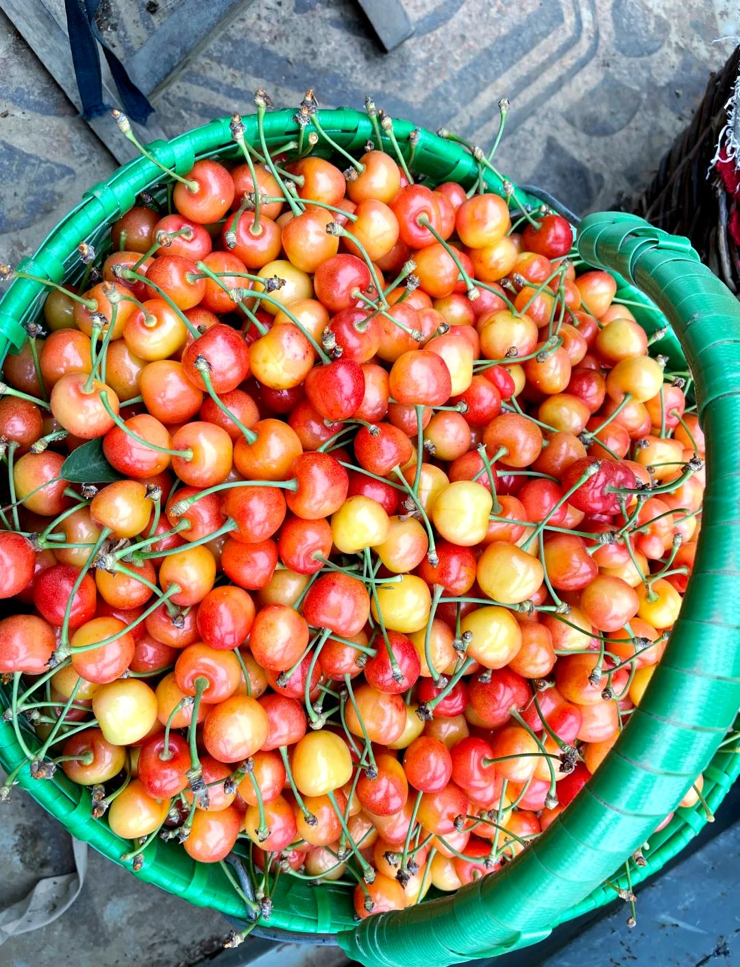 “微信收看25元“,微信收看38元,,“。老板的微信码,响个不停。人们争先恐后挑选着鲜美的樱桃。