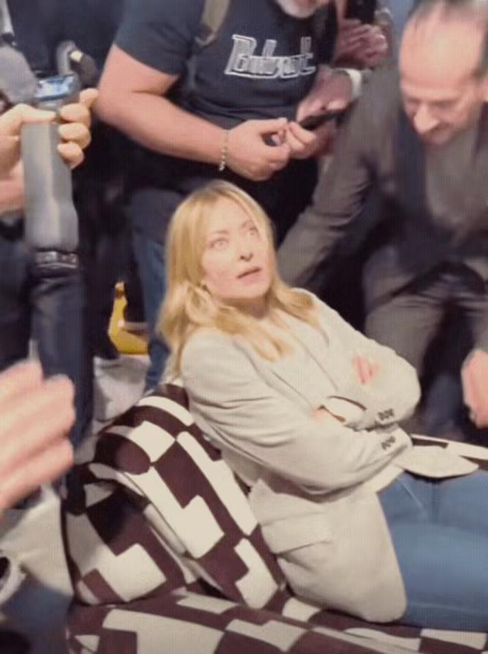 意大利总理梅洛尼,在参观家具展时,试坐一个新沙发,突然一老头把脸凑了过来。梅洛尼下意识心想,有人要图谋不轨?