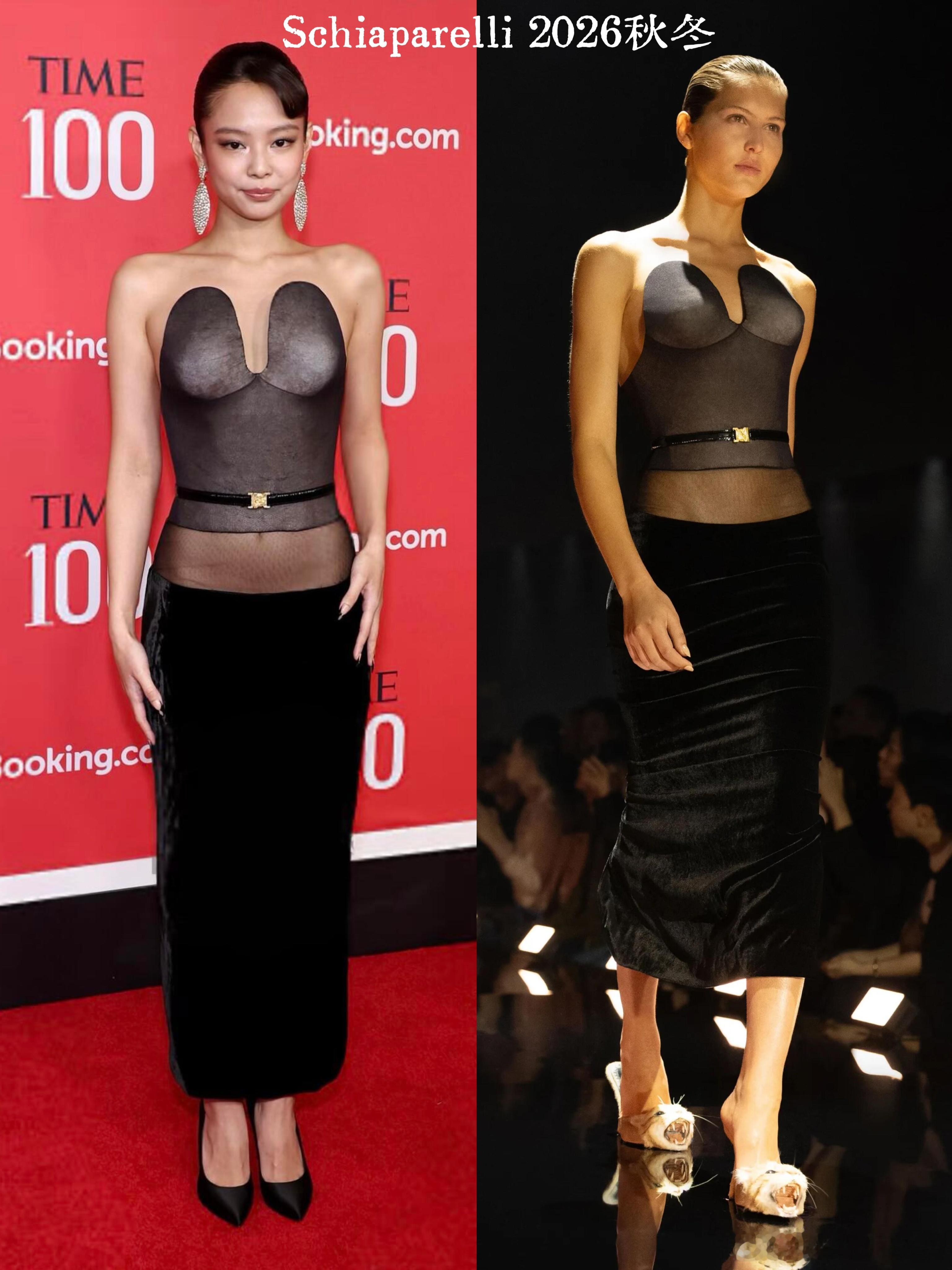 Jennie身穿Schiaparelli 2026秋冬系列在出席TIME100 Gala晚宴及表彰仪式。她也是该榜单中唯一的亚洲艺人。这套很好看但是不太适合她的气质。时尚灵感解读