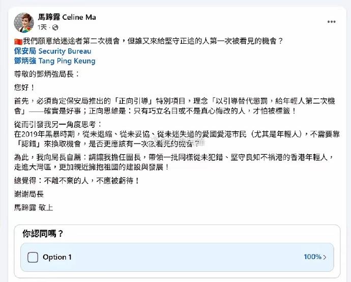 “首位”港星发声支持马蹄露。