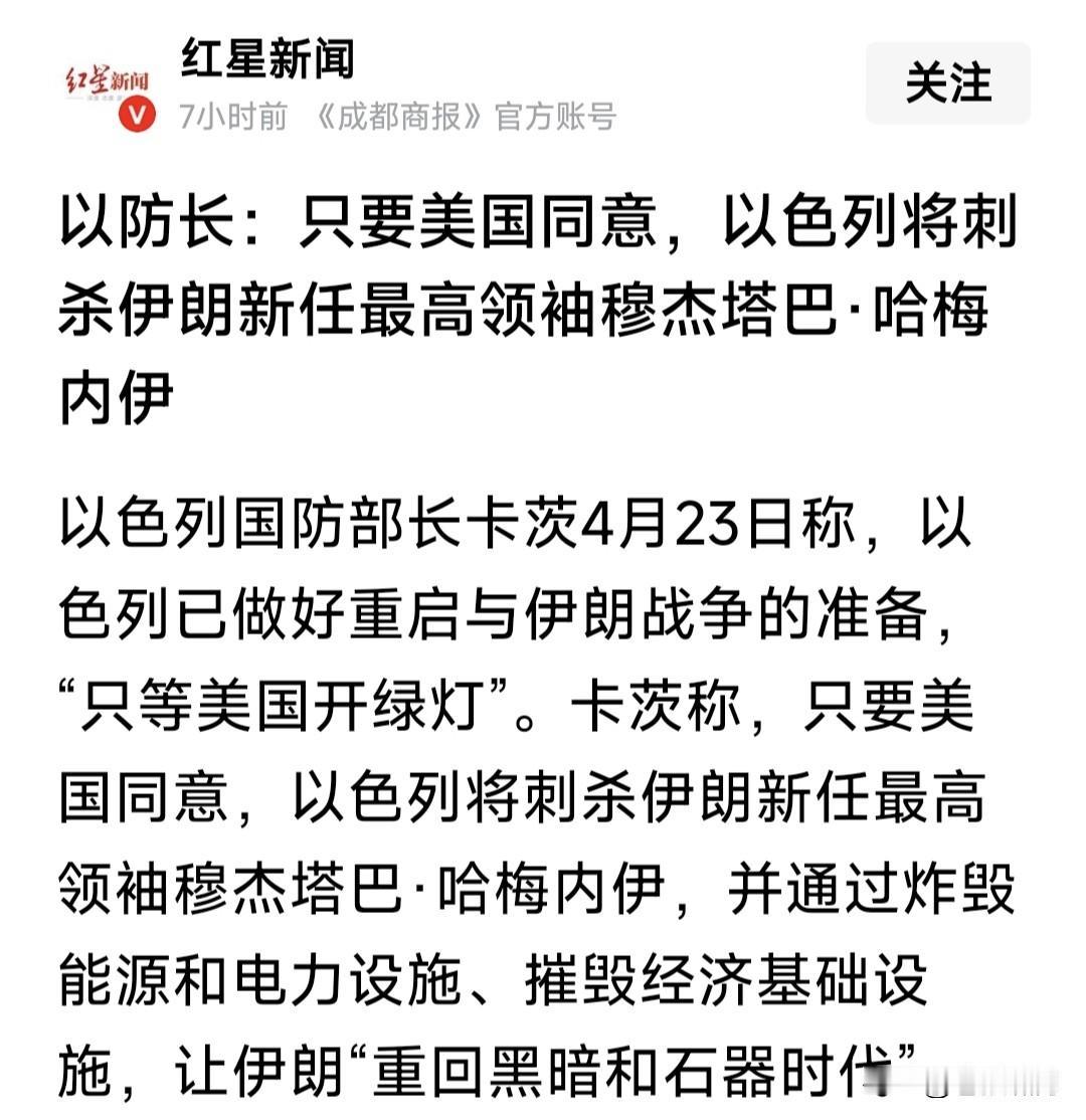 尼亚胡好像不赞同川普做法,以防长声称:已做好开战准备,只要美国点头,以军将斩首穆杰塔巴,摧毁伊朗电力能源基础设施,让其回到石器时代!