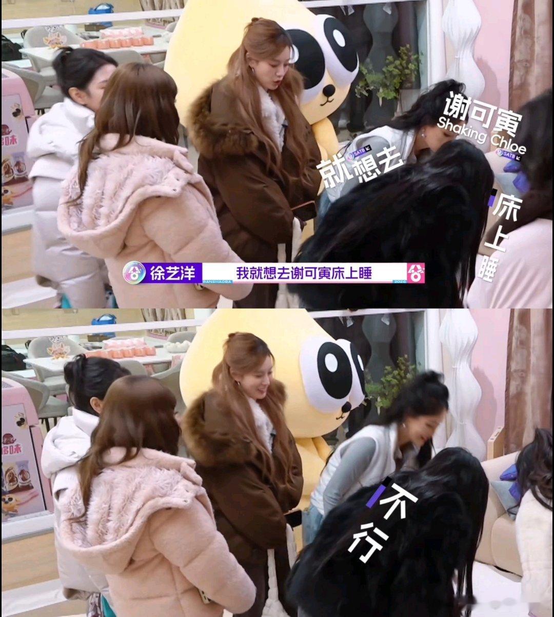 徐艺洋要去谢可寅床上睡超燃青春的合唱分房现场大型黏人现场,徐艺洋直球想跟谢可寅同住,结局圆满圆梦,娘家人感情真的好。