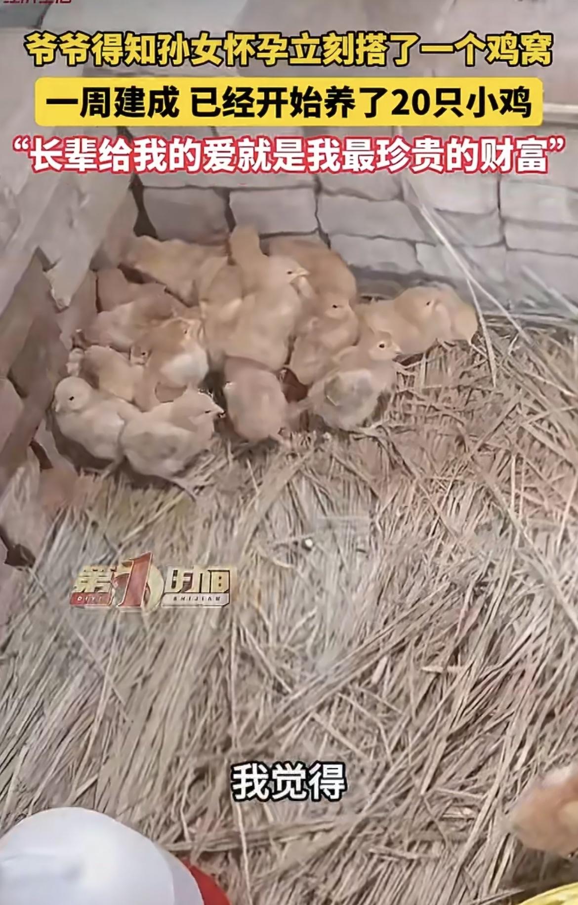 女生后来再回爷爷奶奶家,一进院子就看见整整齐齐的鸡窝和跑来跑去的小鸡,当时就愣住了,问起才知道这都是爷爷知道她怀孕之后特意准备的。