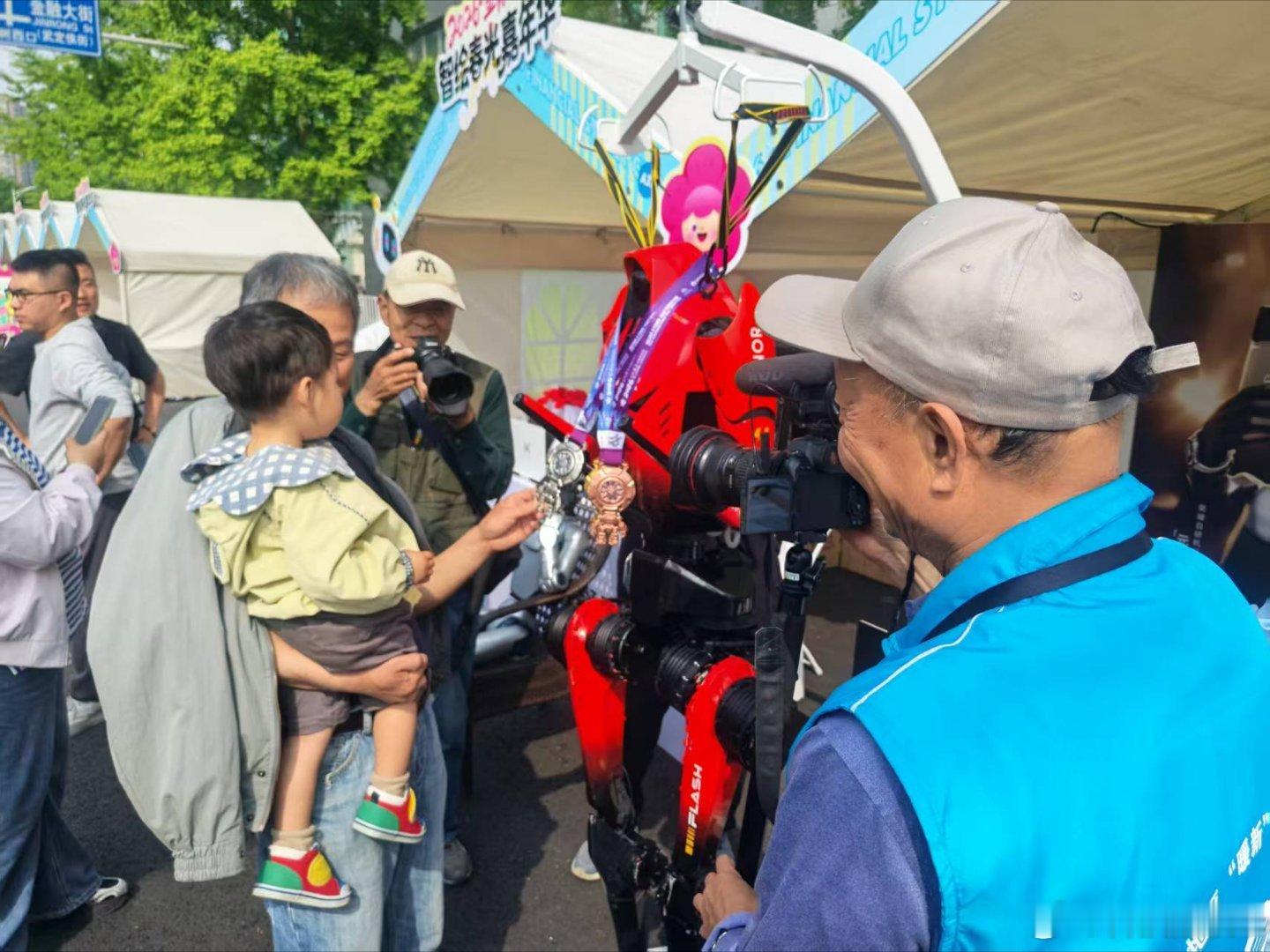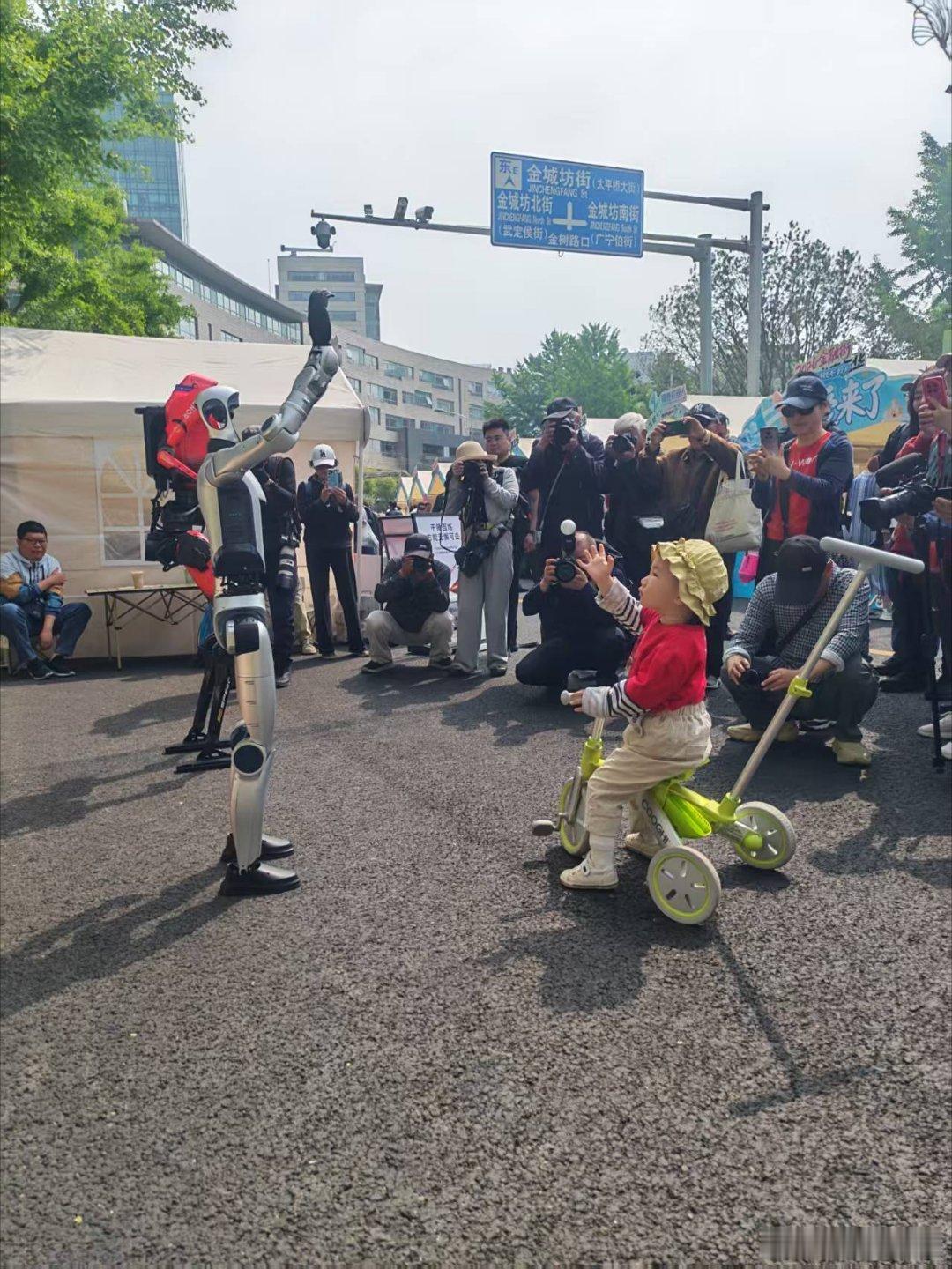 荣耀机器人夺冠后首次亮相2026金融街智绘春光嘉年华街头碰到荣耀机器人元气仔,小家伙冲人挥手打招呼,旁边的小朋友也跟着学,抬手笑得可开心了。路人随手一拍,画面就特别暖。别看是高科技,和孩子的童真放一起,一点不冷冰冰。未来啊,不光是咱们的,更是这些孩子的。