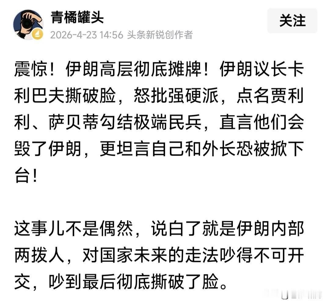 网曝伊朗议长卡利巴夫,怒斥强硬派贾利利与萨贝蒂,勾结极端民兵,与美国死扛,要掀翻本人和外长?