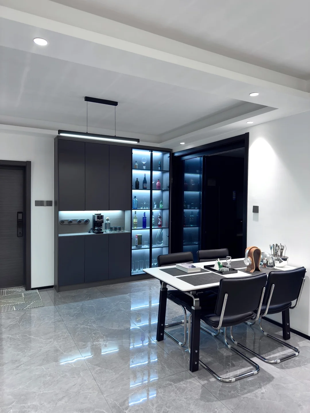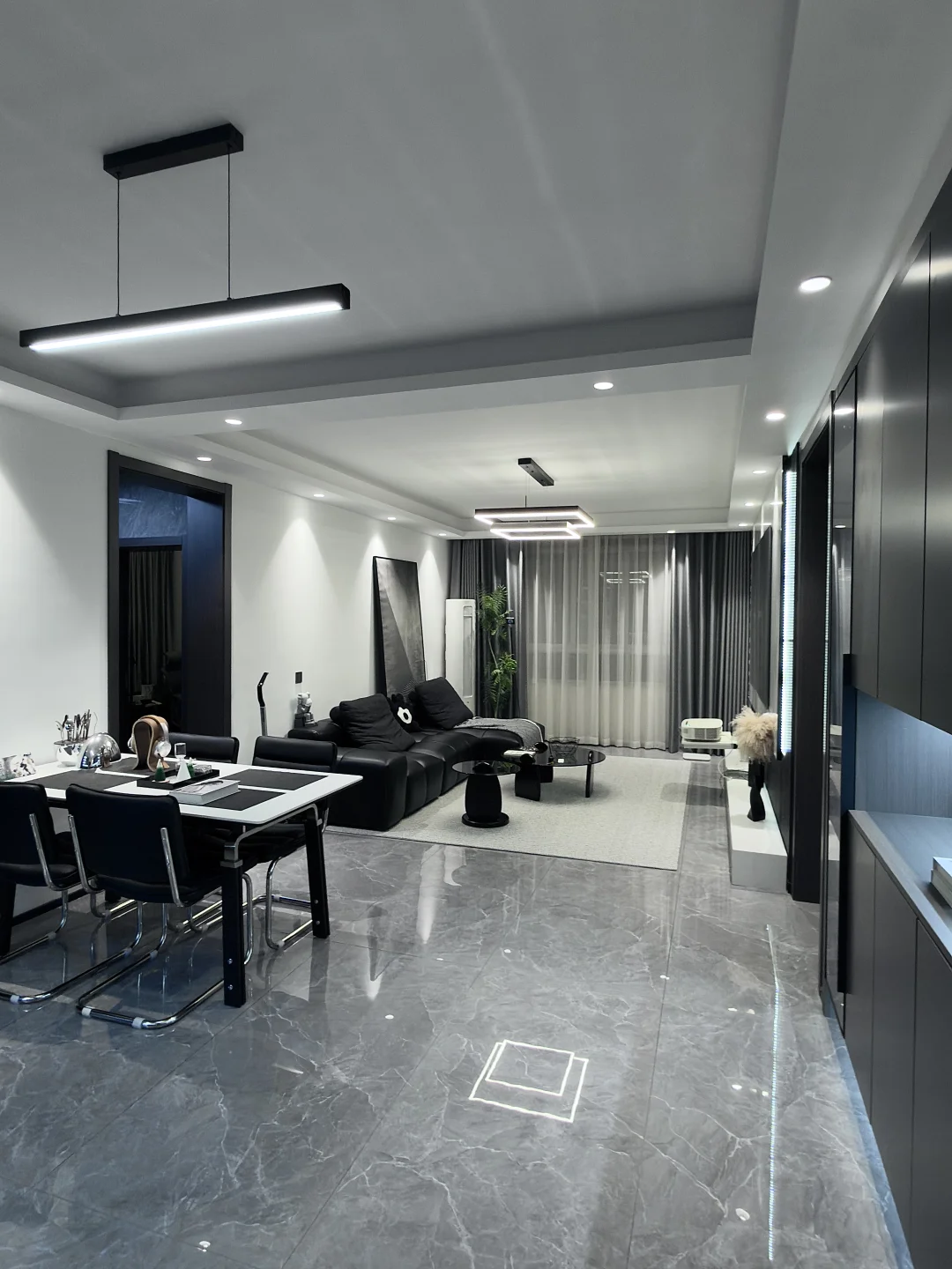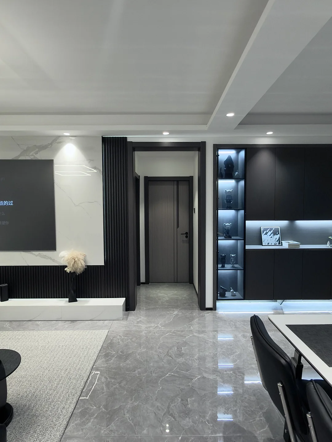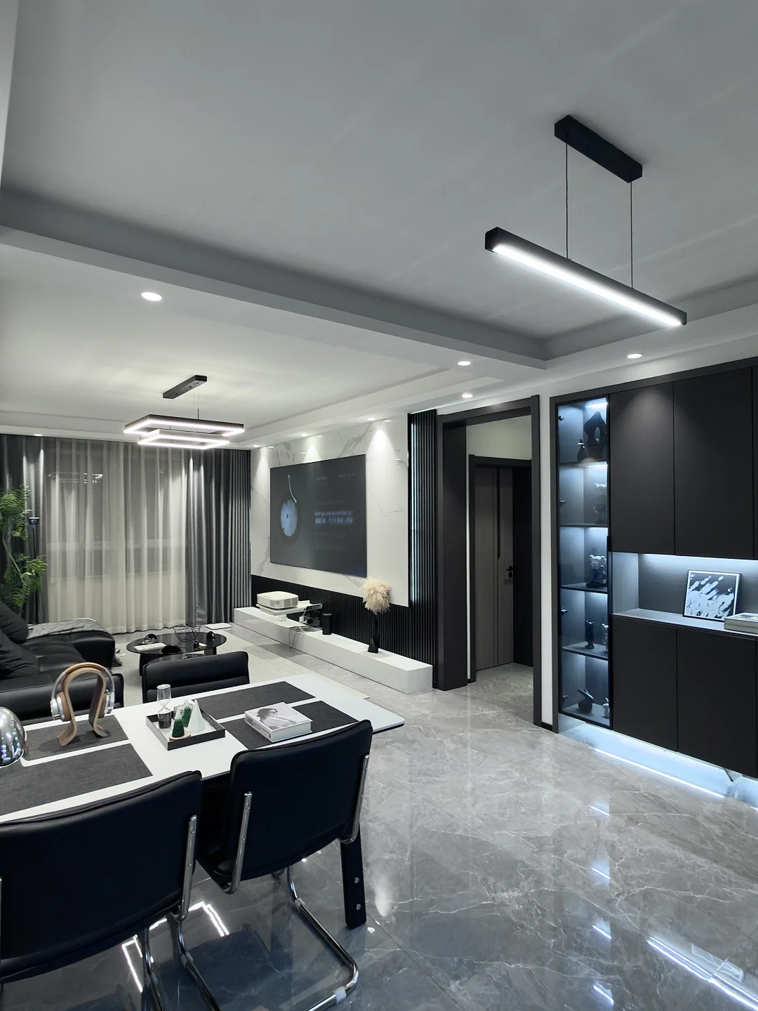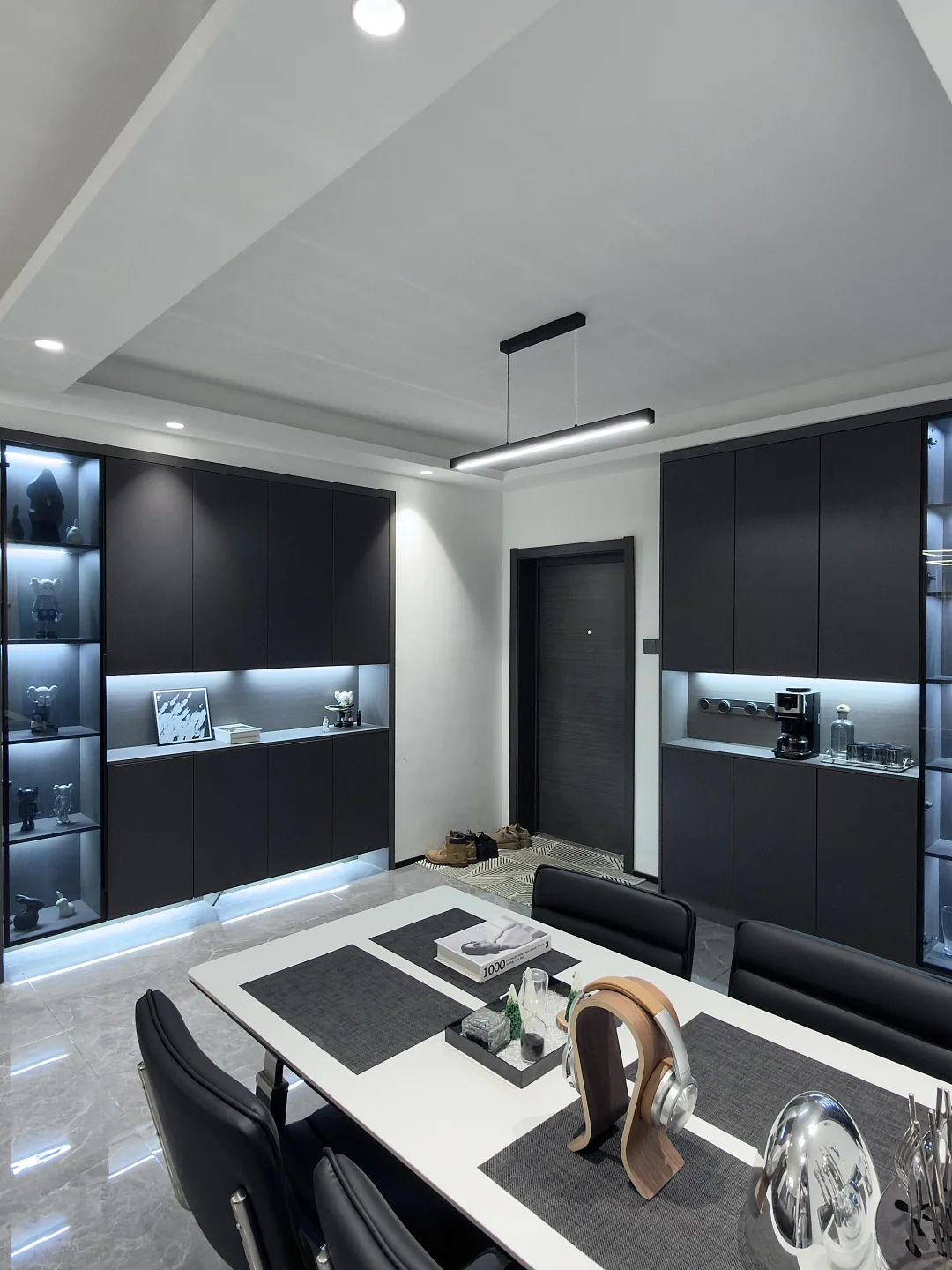 白色岩板餐桌搭配黑色椅子