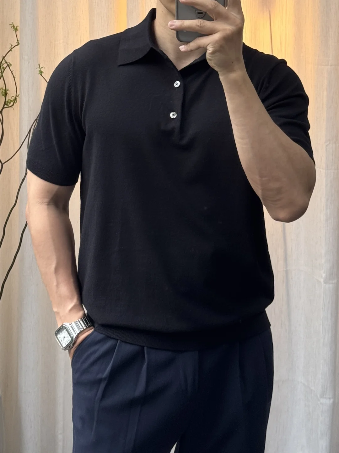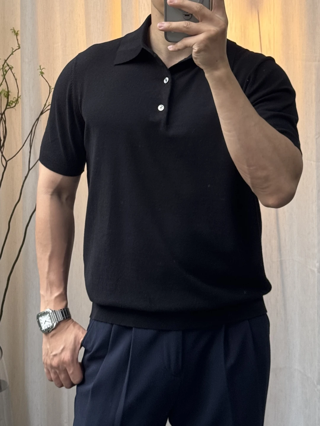 经典的黑色自带沉稳气场,比T恤多一分专业,比衬衫少一分束缚。16针的工艺让面料质感很细腻,上身有种“空气感”,在广州的湿热天气里穿,也清清爽爽。