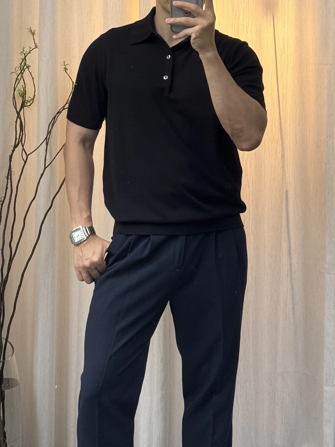 三十岁之后,衣柜里需要一件能应对各种场合的“战袍”。这件100%棉的黑色针织Polo衫,就是我今年夏天的答案。