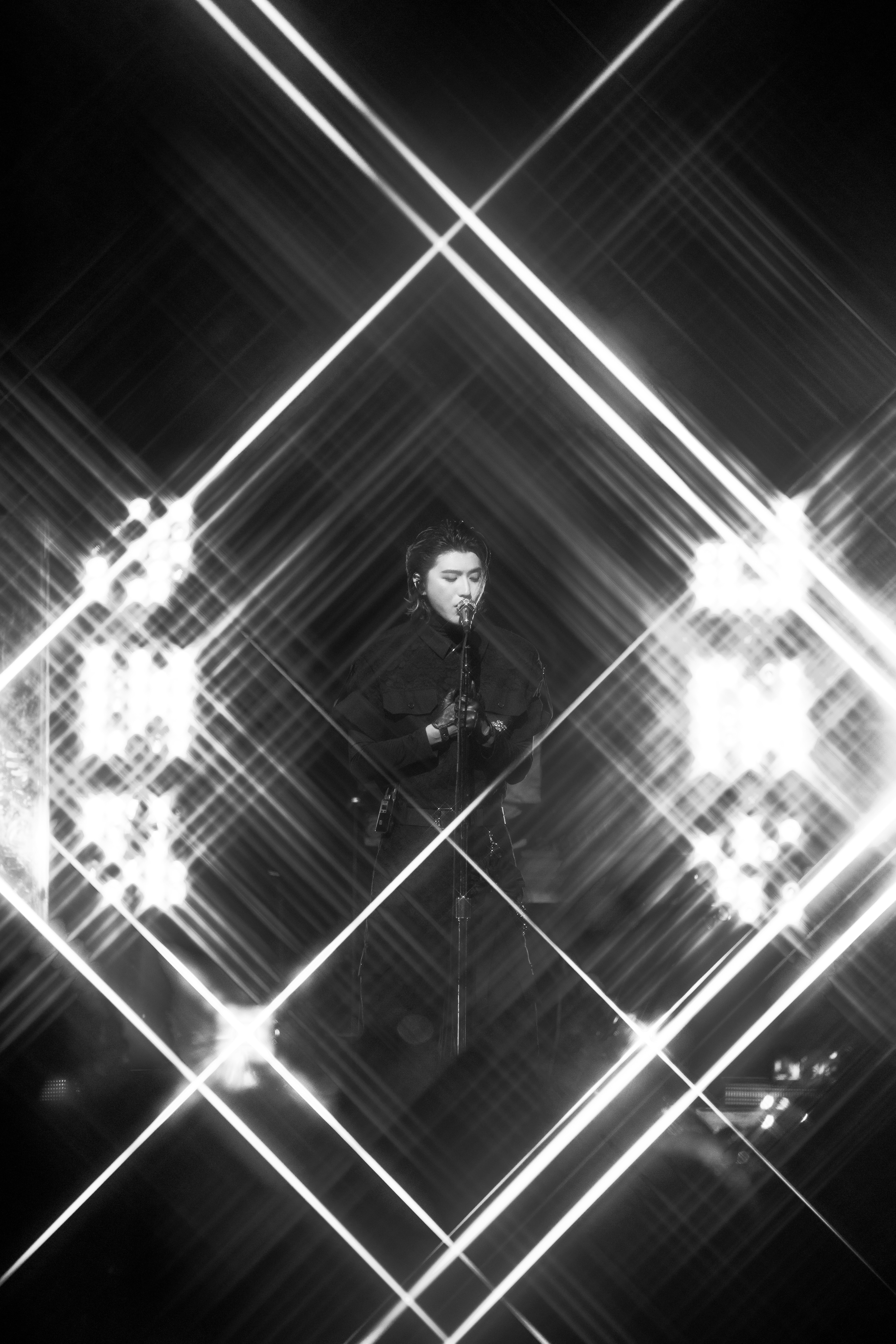 蔡徐坤2026个人全球巡演伦敦站舞台图集,带来Simone Rocha 2026秋冬时装的演绎,特别选择了伦敦时装周的代表品牌,镂空蕾丝设计搭配皮革手套,虽是黑色,但依然如钻石般闪耀💎