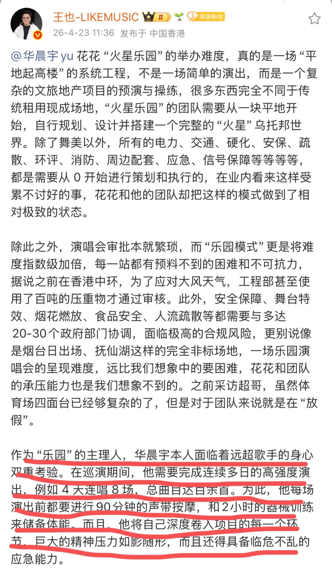 华晨宇演唱会损失好可惜呀但是华晨宇是真男人,还给粉丝报销, 人好好呀,期待下次演