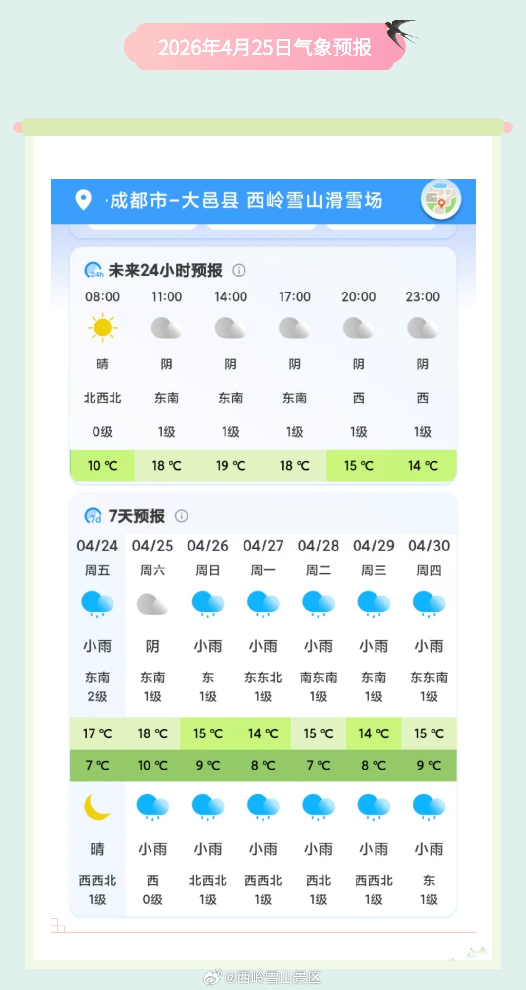 西岭雪山4月25日(周六)气象预报#西岭雪山#