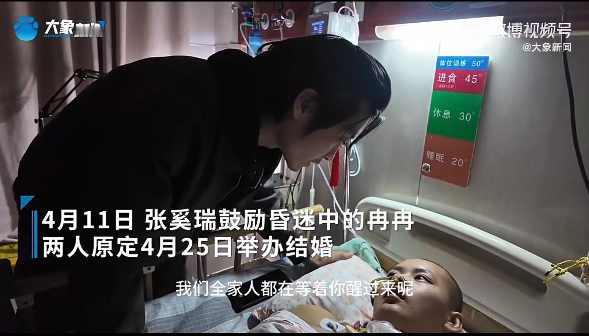 送到医院抢救之后虽然保住了命,但因为大脑缺氧时间太长,一直陷入深度昏迷,靠呼吸机和各种管路维持生命,原定的婚礼也只能无限期推迟。