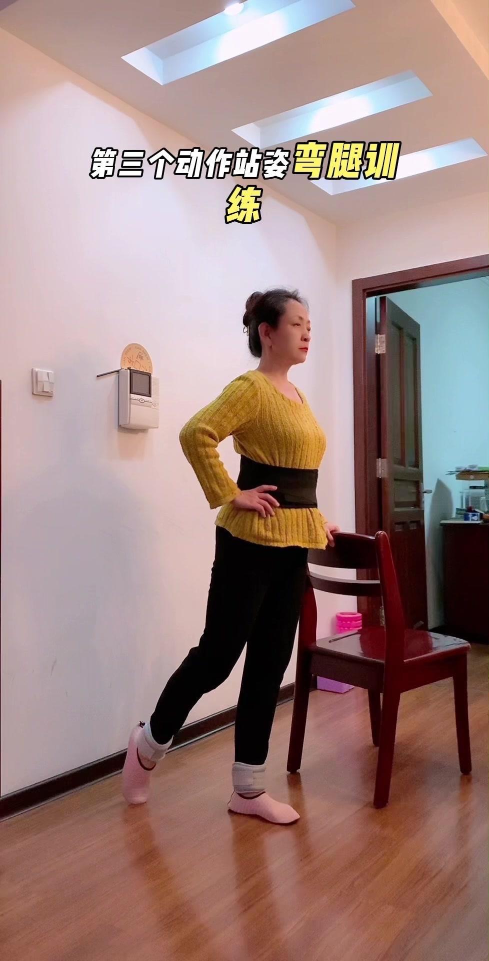 3️⃣站姿弯腿训练:双脚分开站稳,膝盖弯曲但不要超过脚尖,保持腰部挺直,缓慢伸直、弯曲,重复动作,活动膝关节~