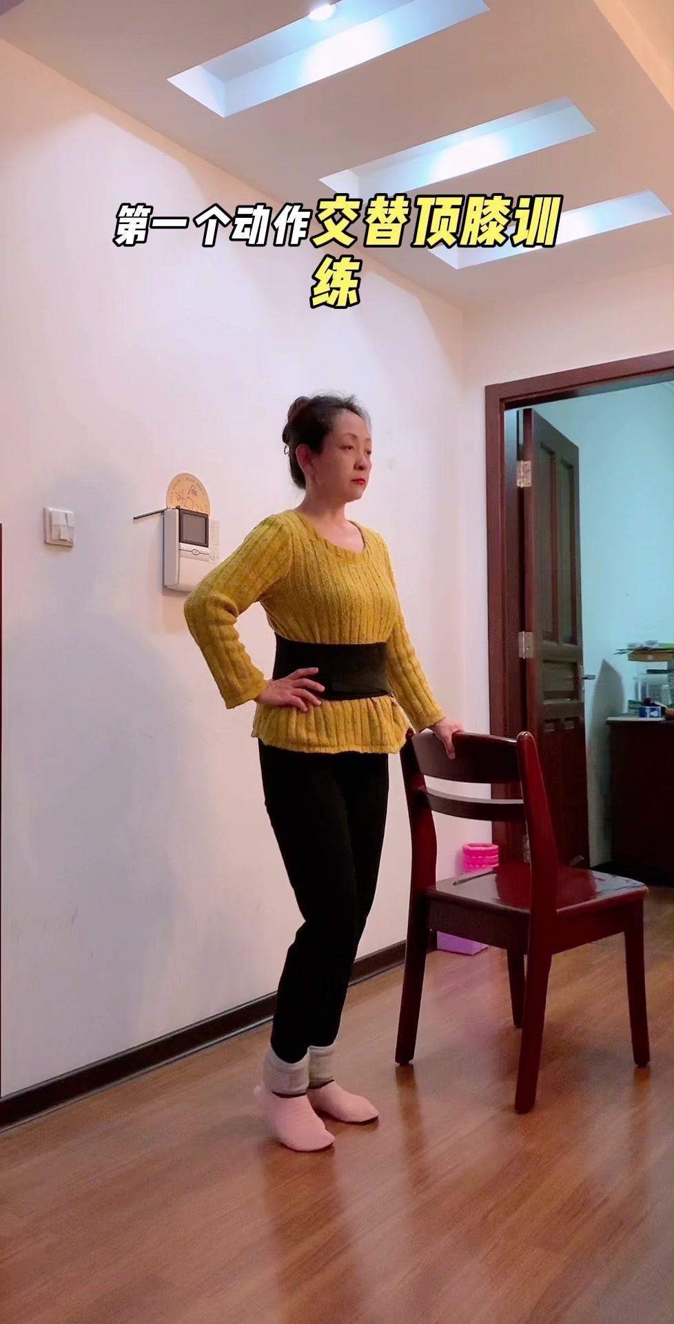 1️⃣交替顶膝训练:把双脚分开与肩同宽,然后左右腿交替顶膝,注意动作缓慢有节奏,感受腿部肌肉的拉伸~